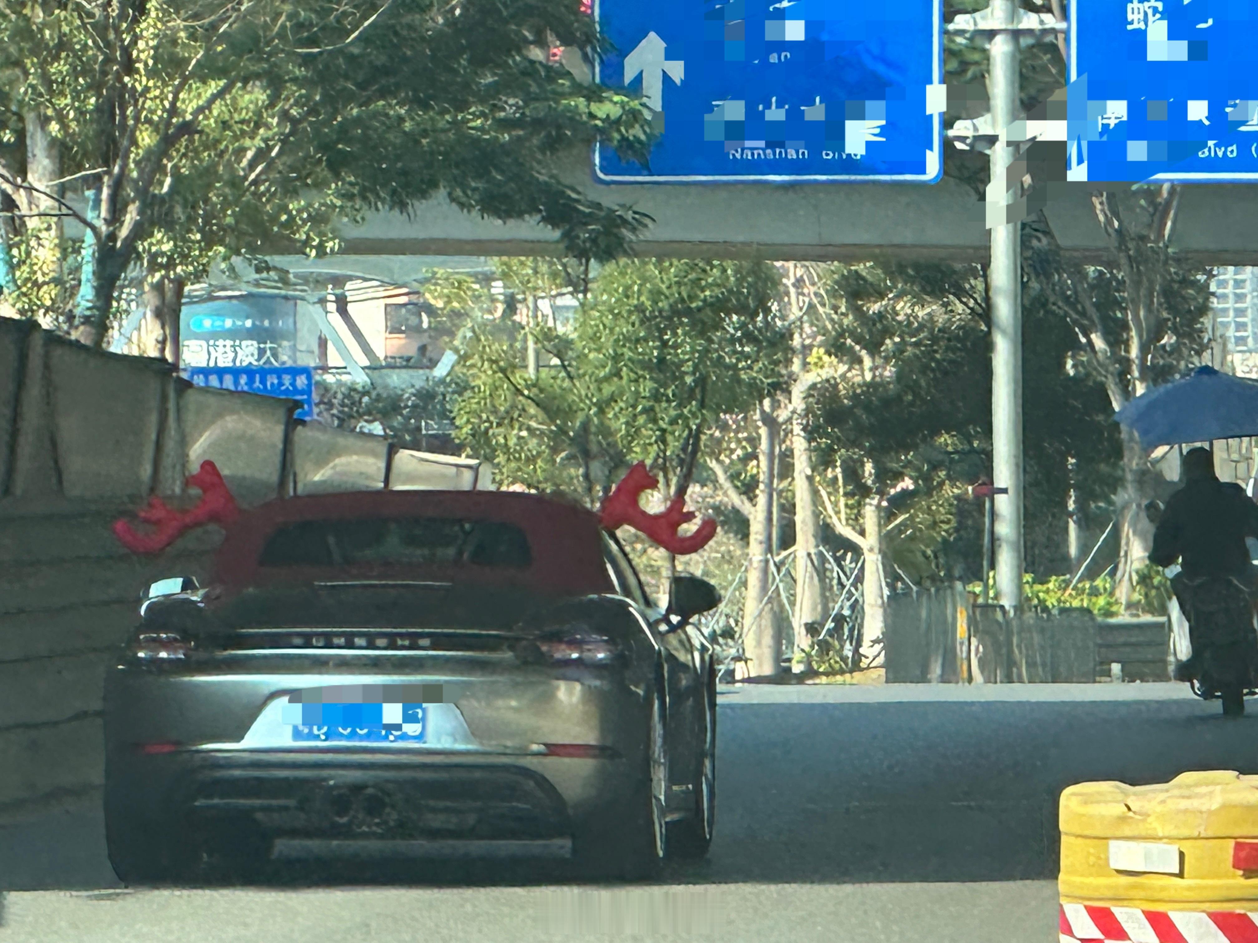 哪里来的718 boxster小鹿角显眼包?这样开过去吸引别人关注,影响驾驶安全,万一忘记了点了开篷怎么办?是不是有安全隐患?真是的,能不能开慢点告诉我哪里买的,一起幼稚一下。🦌🎄 保时捷718boxster