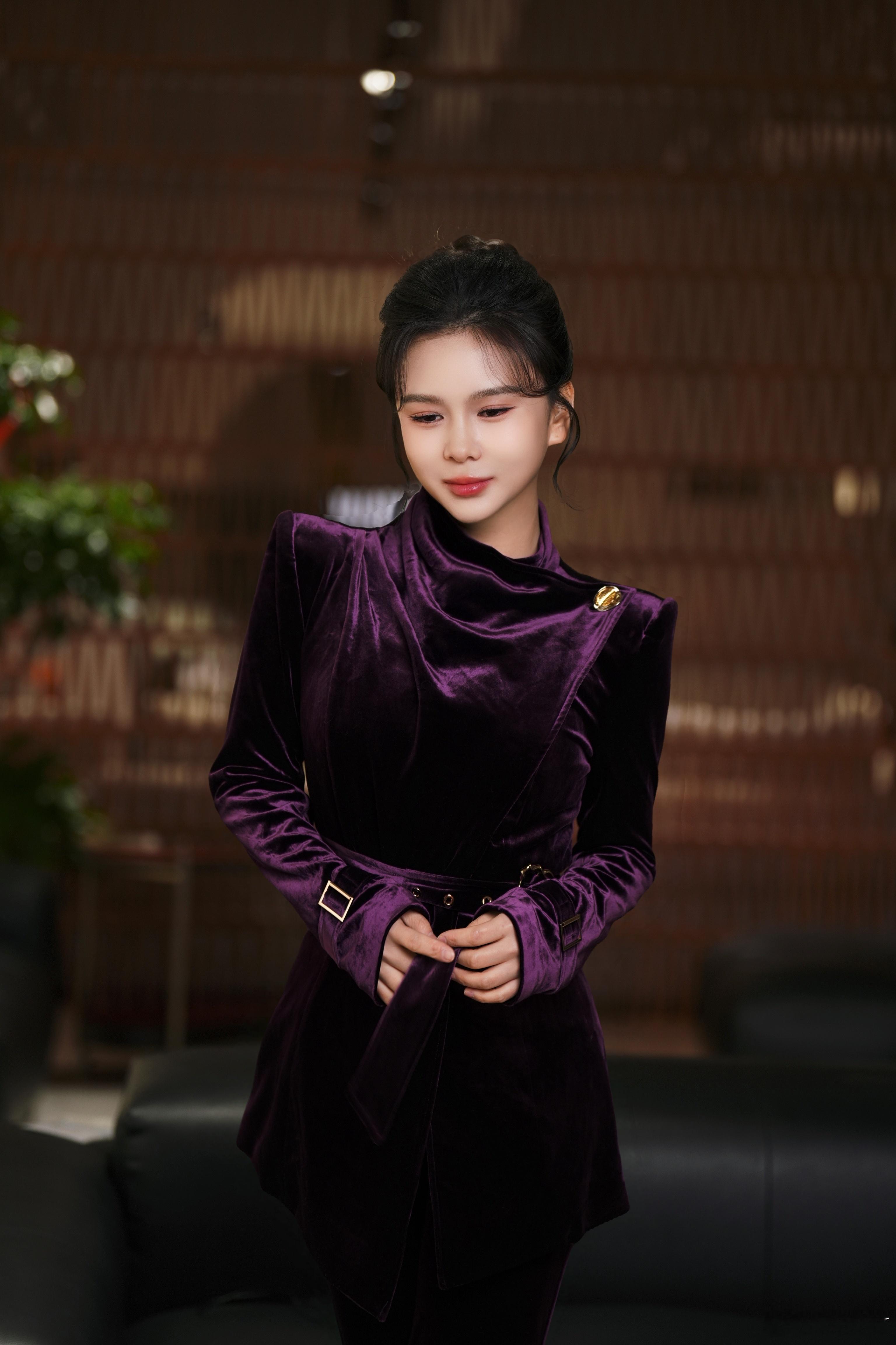 凤凰网财经主持人刘美希时尚穿搭 刘美希的丝绒套装穿搭好亮眼,复古风韵十足,又透着现代女性的干练洒脱