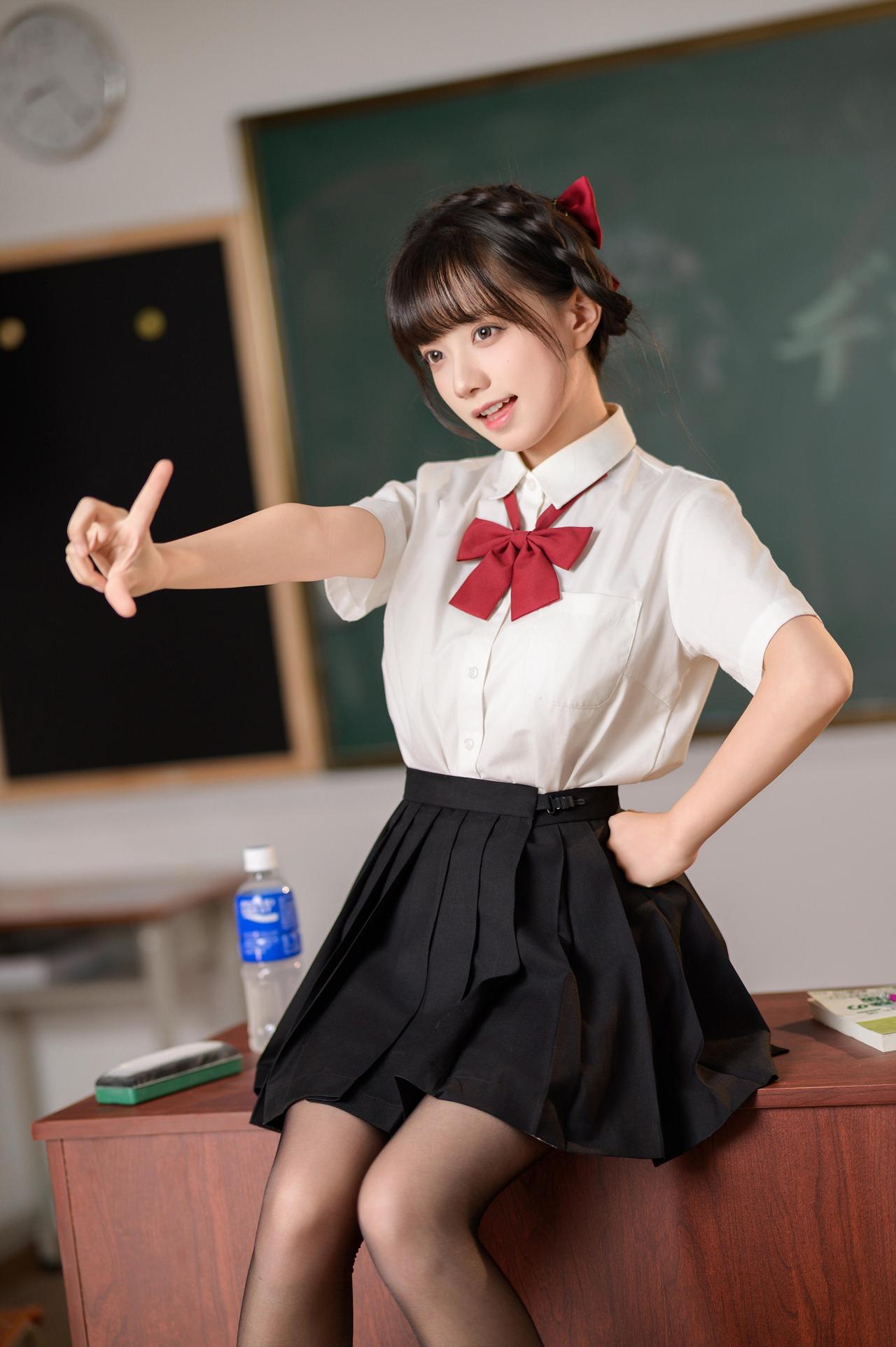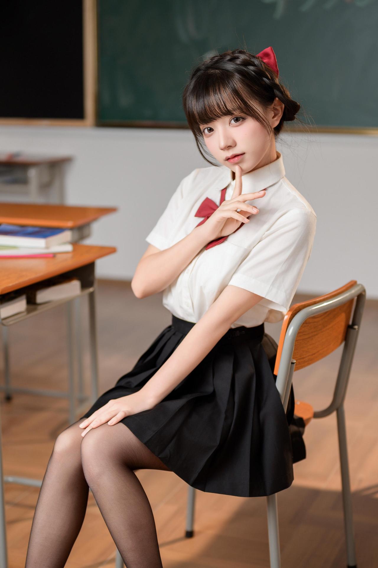 校园少女风,红领结与黑裙的完美搭配,甜美可爱!