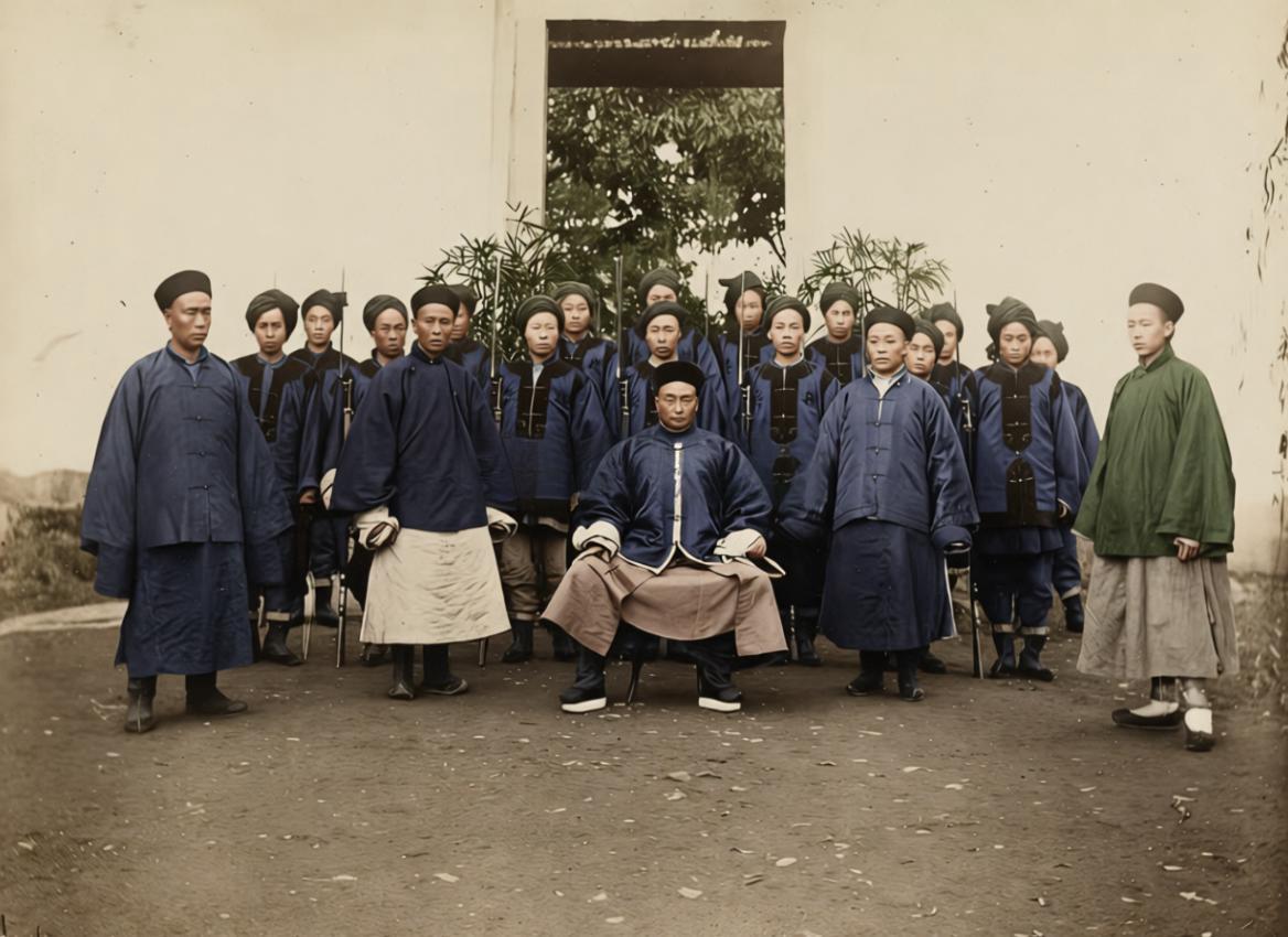清末淮军将领章高元,带着一众清军留下的合影。 坐着的人就是章高元,他出生于安徽合肥,是淮军的后起三名将之一。 章高元虽然是清军将领,但是也当时大部分的清军将领不一样的是,在面对外来侵略的时候,他不畏惧个人的生死,敢于率领士兵与侵略者进行斗争。 章高元参加淮军后,在镇压太平天国和捻军的活动中,每逢作战都是身先士卒,他的官职是用战功打下来的。 照片中,章高元和他的士兵都穿着旧式的清军制服,并不是他们不想进步,而是时代的局限,让他们只能如此。 章高元和他手下的士兵,都是经过战火淬炼的精兵。 1884年法国人入侵台湾的时候,章高元就带领士兵请战法军。 虽然当时的法军已经是一支装备着现代化武器的军队,但是章高元带着官兵与法军近身肉搏,给法军造成了巨大伤亡,为抗击法军的侵略,立下了巨大功劳。 在甲午战争中,章高元又带领军队在辽东与日军血战,同样表现出了极高的爱国情怀,给日本侵略军造成了重大伤亡。 章高元只是生在了一个错误的时代,当时的清朝统治者软弱无能,让章高元这样的爱国将领,有抱负无处施展。 1897年11月,德国人侵略胶州湾的时候,迫于清朝统治者下达的不抵抗命令,章高元只能眼睁睁看着德国人占领了青岛和胶州湾。 在此期间,章高元曾多次请求抗击德国人的侵略,但是因为朝廷的阻止,都没有如愿。 德国人的阴谋得逞后,章高元气的两只耳朵都失聪了。