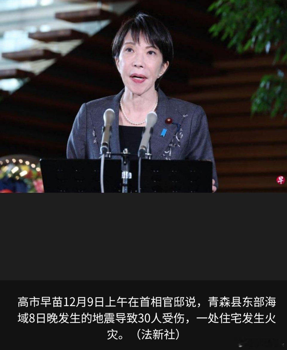 日本气象厅预估一周内或发生9级地震日本这次的地震只能说是小打小闹,至于日本气象厅的话,听听就行了,别当真。九级地震那可不是开玩笑的,不是这么容易发生的。小日子老百姓多吃几顿大米饭,比啥都强。日本首相高市早苗星期二(12月9日)上午在首相官邸指出,青森县东部海域星期一(8日)晚上发生的地震导致30人受伤,一处住宅发生火灾。共同社报道,北海道和青森县均有人员受伤。青森县和岩手县部分地区水管受损,约1360户停水。为确保安全,青森县八户市等地的小学和初中停课。富士新闻网早前报道,截至星期二凌晨1时30分,受地震影响地区共有5万2000户家庭、超过10万人接到避难提示。日本时事社说,在青森县和岩手县,约4200户一度停电。海外新鲜事