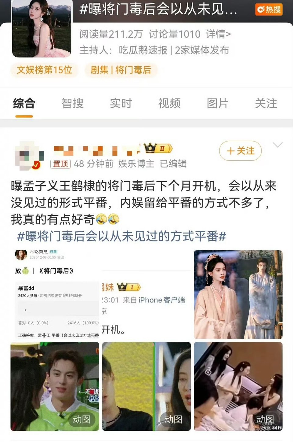 真嘟假嘟,现在又传《将门毒后》男女主平番