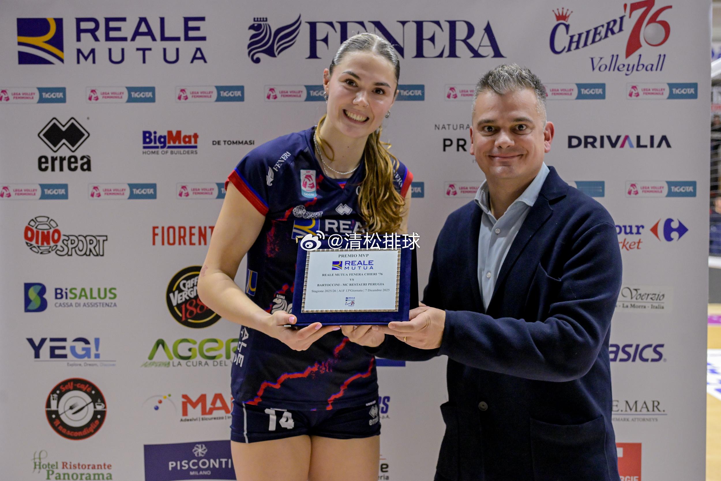 【技术统计】2025-2026意大利女排甲级联赛常规赛第13轮基耶里3-0佩鲁贾(25-22 25-14 25-15)总得分:75-51进攻:47-31拦网:10-5发球:6-0自失:15-12基耶里女排个人得分:孔兹勒:17分(27扣12中0失误1被拦、3拦2发)内梅特:17分(28扣14中3失误1被拦、2拦1发)内尔维尼:10分(23扣9中2失误3被拦、1发)切库拉耶夫:10分(11扣8中0失误0被拦、2拦)MVPA格雷:7分(13扣4中1失误0被拦、2拦1发)达布林克:1分(2扣0中0失误0被拦、1拦)范阿伦:1分(1发)斯皮里托:7次一传、7到位0失误一传到位率100%、一传效率100%、完美到位率14%清松排球佩鲁贾女排个人得分:马尔科维奇:10分(16扣8中0失误1被拦、2拦)菲索利:8分(20扣8中0失误2被拦)加尔迪尼:7分(29扣7中0失误3被拦)马扎罗:4分(5扣1中1失误0被拦、3拦)威廉姆斯:4分(9扣4中2失误3被拦)巴托里尼:3分(8扣3中1失误1被拦)西尔雷西:12次一传、9到位2失误一传到位率75%、一传效率58%、完美到位率33%清松带你看排球2025-2026意大利女排甲级联赛