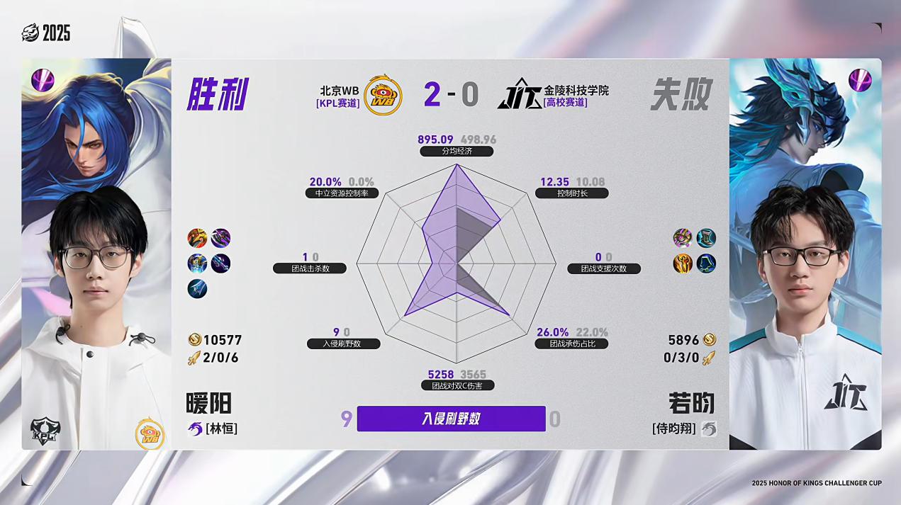 虎扑12月09日讯WB/JIT第2局数据对比:暖阳橘右京完全包围若昀大司命。