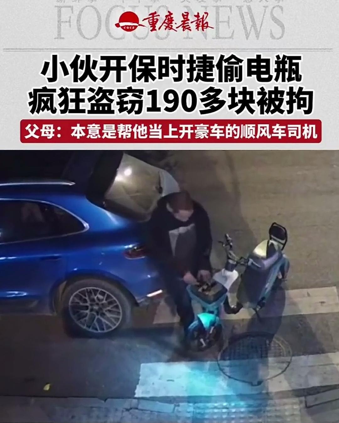 开保时捷偷电瓶,一夜盗走190多块、只卖了一万多元[what][what][what]职高辍学无正当职业,父母还能给凑钱买一辆二手保时捷,家境优渥、前科累累,说明什么?说明父母对孩子的教育大包大揽惯的,让他目中无人、偷窃成瘾!你看多次盗窃入狱,才二十多岁就多次偷窃入狱,偷电瓶比跑车来钱快,父母及时满足各种需求,让他没有耐心去赚钱。父母用物质堆砌的保护伞,最终变成了困住儿子的牢笼,还亲手给儿子的犯罪行为铺了路。