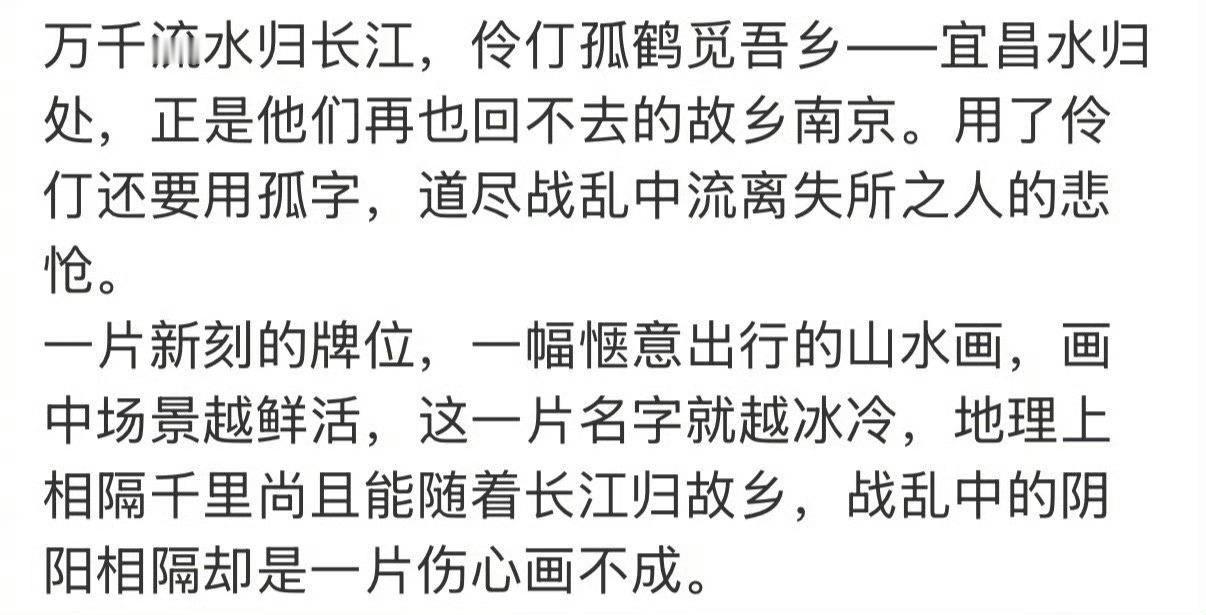 得闲谨制莫得闲家的对联看破防了《得闲谨制》这副对联杀疯了!“万千流水归长江,伶仃孤鹤觅吾乡”十四字道尽南京大屠杀后的流离与乡愁,太爷背着满是亲人牌位的行囊踽踽独行,看得人眼泪狂飙!细节里全是家国伤痛与坚守,二刷都嫌不够!