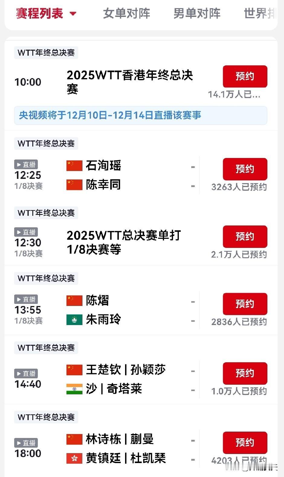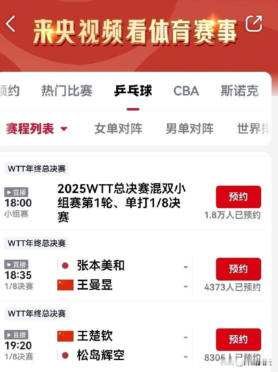 作为乒乓球迷,说几句便宜话:成都混团世界杯这顿大餐还没消化完呢,香港wtt总决赛又给安排上了。 关键是这总决赛吧,上来就是好戏,个个是角儿,随便拎出来一场,都值得期待。 比如,王楚钦对阵松岛辉空,王曼昱对阵张本美和,比如陈熠对阵朱雨玲………,还是自己挑选着看吧,眼花了。