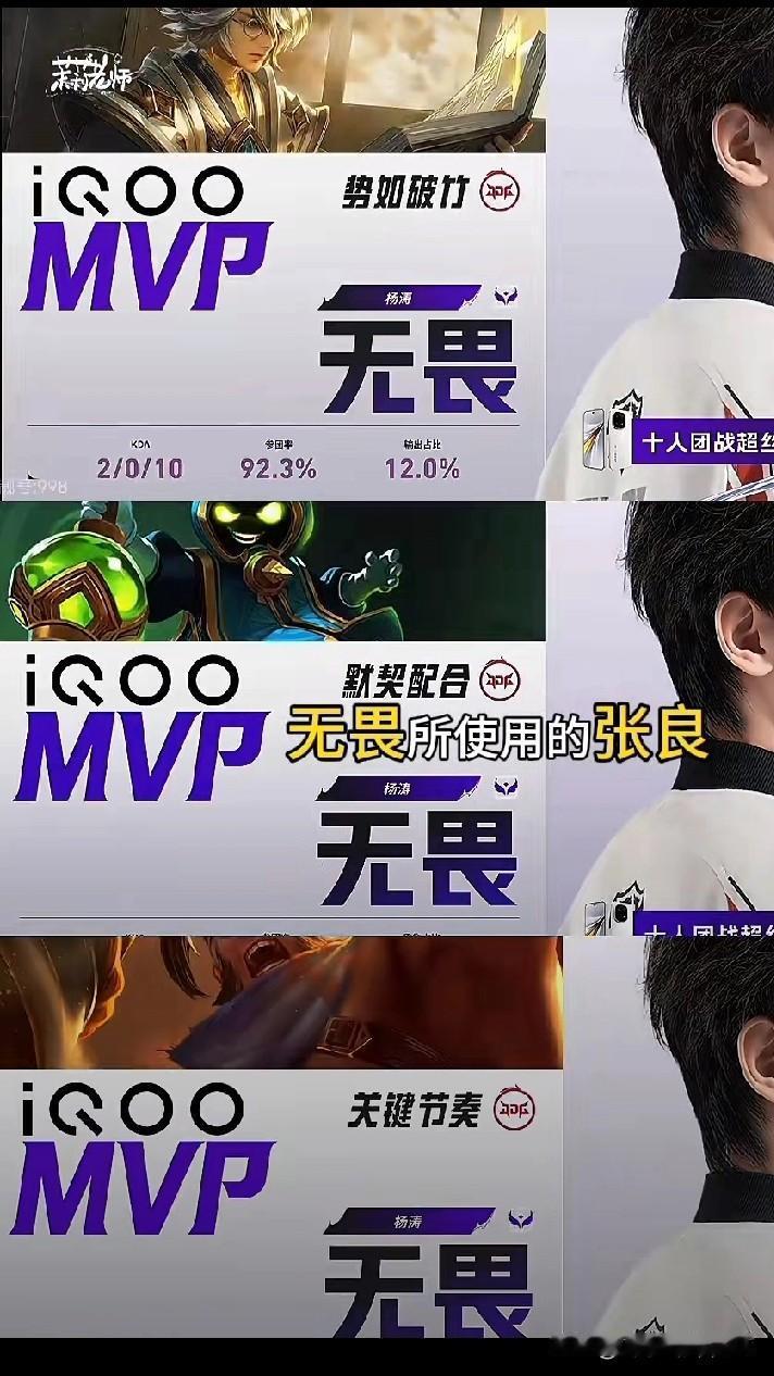 无畏挑杯三连MVP 2025年王者荣耀挑战者杯中,北京JDG选手无畏打出的亮眼表现。在12月9日北京JDG 3:0战胜主播战队WYG的挑杯首秀里,无畏拿下了三连MVP。 这场比赛中他状态拉满,首局用苏烈关键开团拍碎对手阵型,第二局以太乙真人默契配合队友锁定伽罗奠定胜局,第三局拿张良把控节奏,三局发挥都成为团队取胜的关键。赛后采访时他很谦逊,将功劳归于教练选了自己熟练的英雄以及队友给力,还表示这只是一场比赛,后续会继续努力。