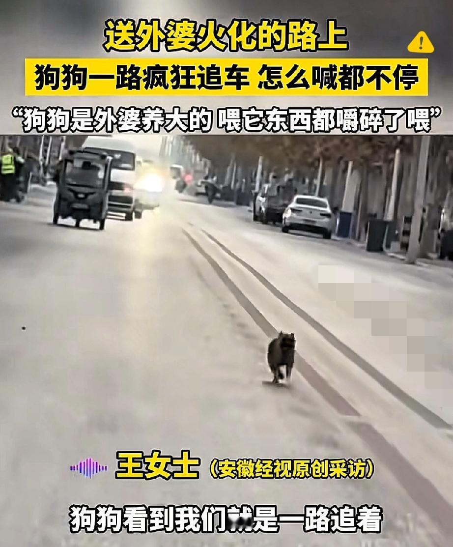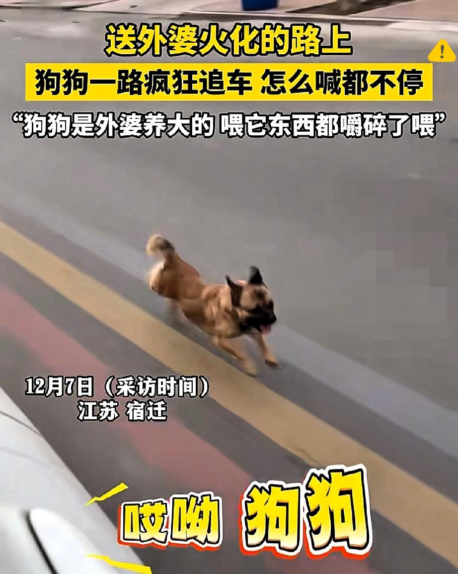 江苏老人离世后,灵车后突然窜出一只小狗,一路狂奔追赶,这份无声的告别真的戳中泪点。 它或许是循着主人身上熟悉的气味,或许是感知到了生命气息的变化,不懂死亡的意义,却凭着本能不愿放手。 老人家属心疼地把它抱上车,这一幕恰是最好的证明:你对动物的每一份好,都会变成它刻在骨子里的牵挂。 总有人说动物不懂情感,可它们的爱最纯粹也最执着。 没有复杂的表达,只用尽全力追赶,这份忠诚无关利益,只源于日复一日的陪伴与投喂。 其实万物皆有灵,人与动物的情感从不是单向付出,而是你给它温暖,它便用一生回应。 你家宠物有没有做过让你瞬间破防的暖心举动。 来评论区说说你们的故事~