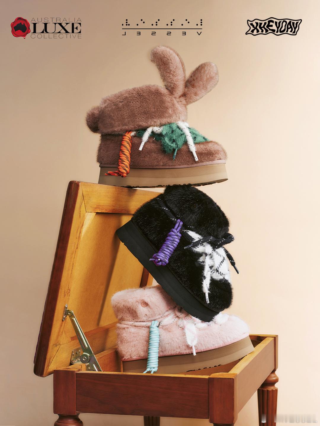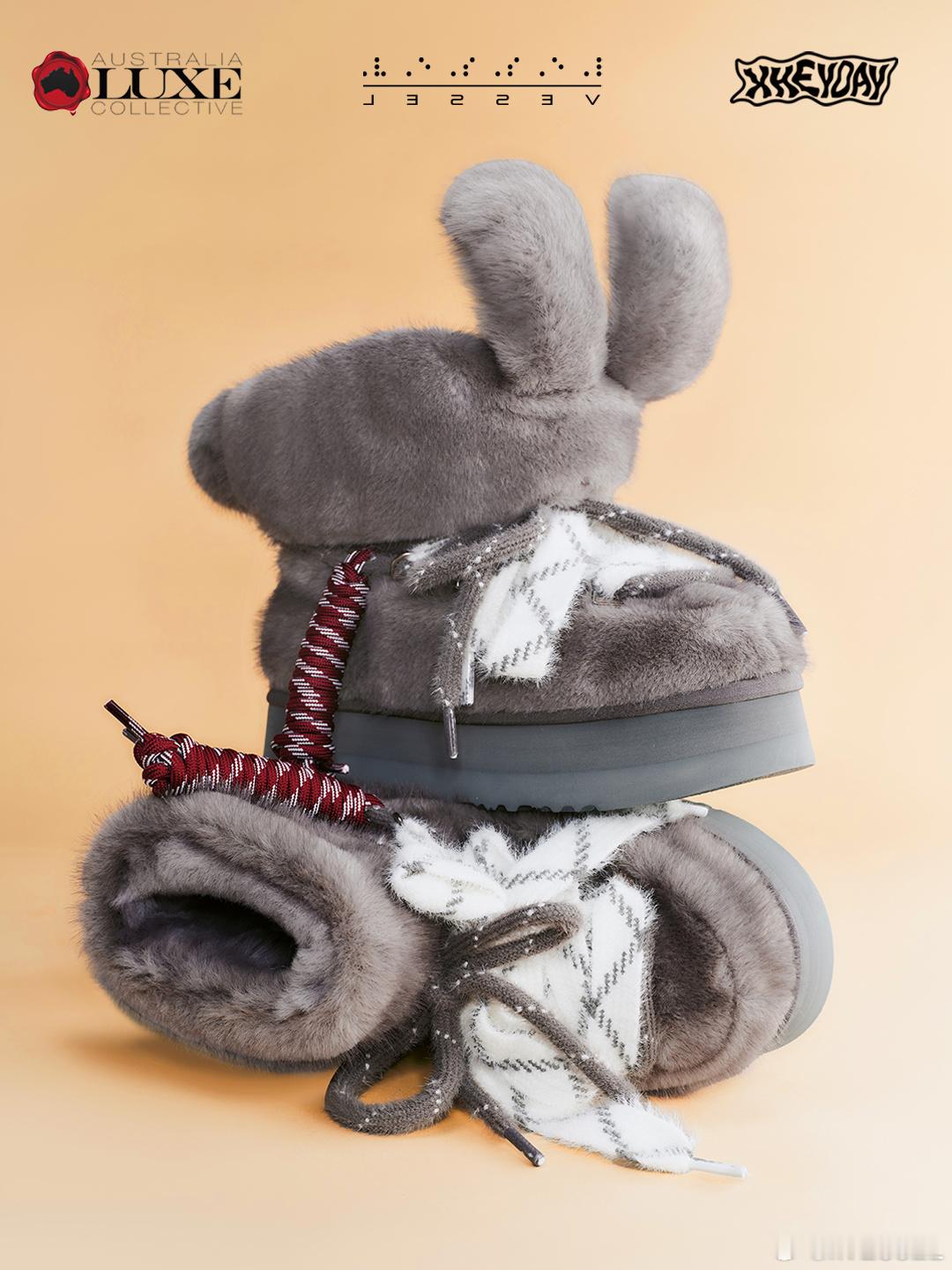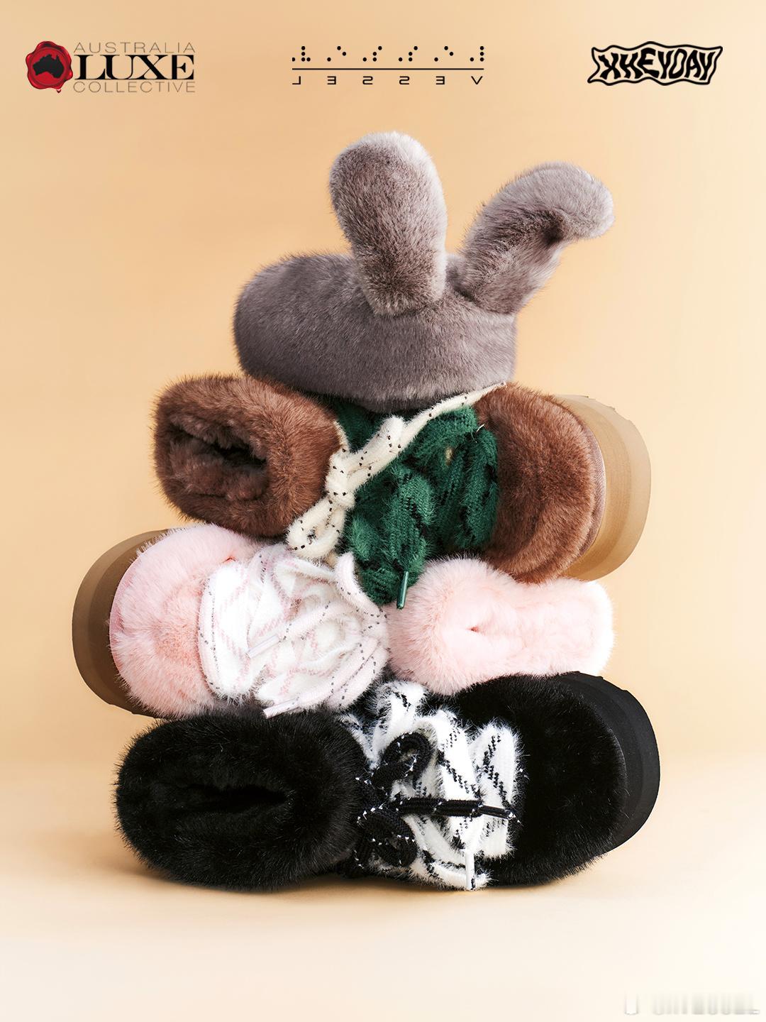 xVESSEL、Australia Luxe Collective与HEYDAY三方灵感碰撞共同打造出这双墩墩兔雪地靴它懂你要的不仅是温度,更是风度那些解构巧思、创意细节与软糯感,都是它无声的贴心四种配色,如同四种心情你的寒冬故事,由它暖心陪伴书写xvesselxvessel在哪