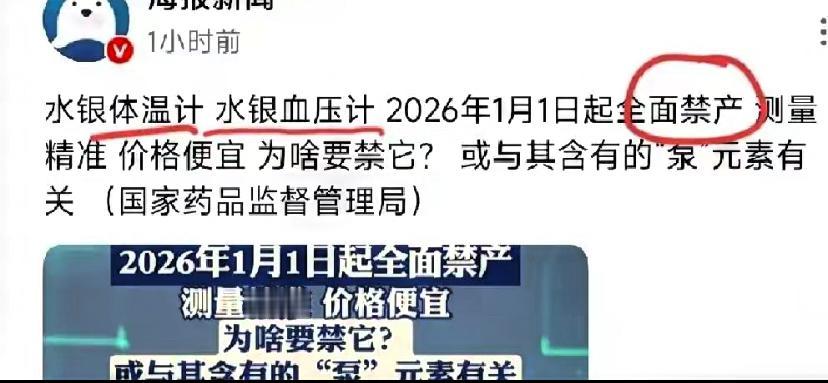 药店水银体温计卖断货! 一囤就是三五根,真相藏不住了 最近去药店买水银体温计,是不是经常遇到断货或限购?身边好多人都是整盒往家搬,一囤就是三五根,完全不心疼钱似的。原来2026年1月1日起,这陪伴几代人的“老伙计”就要全面禁止生产了! 家里有娃、有老人的,肯定都懂这份囤货的执念。电子体温计是方便,不用甩动、读数快,但关键时刻是真不靠谱啊!孩子半夜发烧,用电子的测,一会儿37.4℃,一会儿38.3℃,数值忽高忽低,根本没法判断真实体温,急得家长团团转。而水银体温计就不一样了,误差只有0.1-0.3℃,靠水银热胀冷缩的原理,再加上底部的曲颈缩口设计,读数稳得很,关键时刻能让人心里踏实。 而且水银体温计是真耐用,一根能用好几年甚至十几年,几块钱的价格,性价比直接拉满。哪像电子体温计,还得频繁换电池,有时候着急用,偏偏遇到没电罢工,别提多闹心了。对于习惯了它的老人来说,只要看惯了刻度,反而比电子屏的数字更让人信服,毕竟这么多年的精准口碑摆在那儿。 不过它被禁产也不是没道理。水银体温计最怕摔,一旦破碎,里面的汞会变成细小银珠滚得到处都是,不仅有毒还会挥发,吸入人体对健康有害,清理起来也格外费劲,得用胶带小心翼翼粘起来密封丢弃。这安全隐患确实没法忽视,尤其是有小孩的家庭,总怕孩子不小心打碎出意外。 一边是大家对精准度的依赖,一边是无法回避的安全问题,难怪禁产消息一出,大家都忙着囤货。这小小的水银体温计,承载的不只是测温功能,还有太多童年回忆——小时候发烧,爸妈甩着温度计“哗哗”响的声音,至今想来都格外亲切。 你家是不是也囤了水银体温计?对于它的禁产,你是觉得可惜不舍,还是认可这种更安全的选择呢?