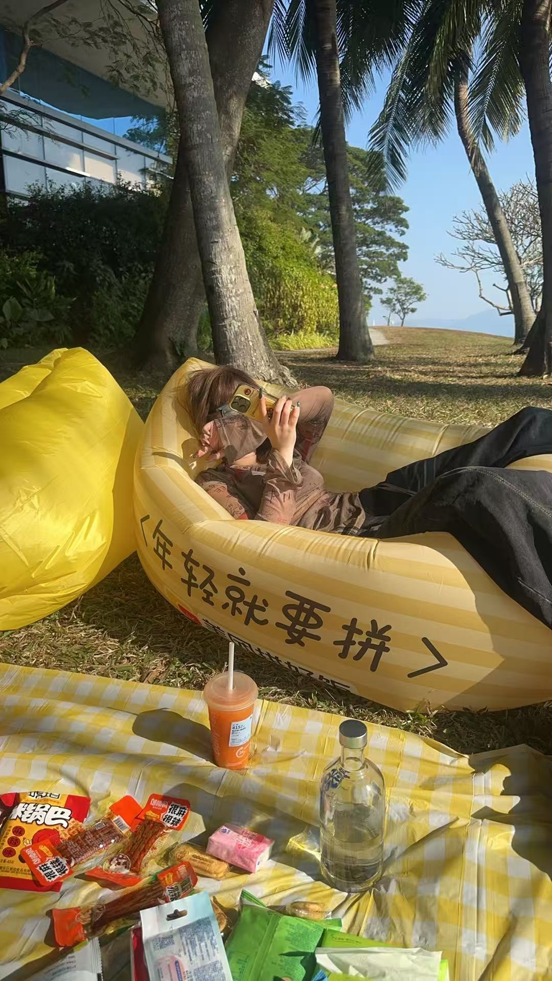 钱多多的打工日记来啦和姐妹约了个公园野餐局🧺在成片的椰林下铺开格子毯摆满喜欢的零食~躺着晒太阳,听风穿过叶子沙沙响从午后守到日落整片天空像被打翻的橘子汽水云慢慢游,时间也缓缓走生活笑料撞满怀我的幽默灵感片场