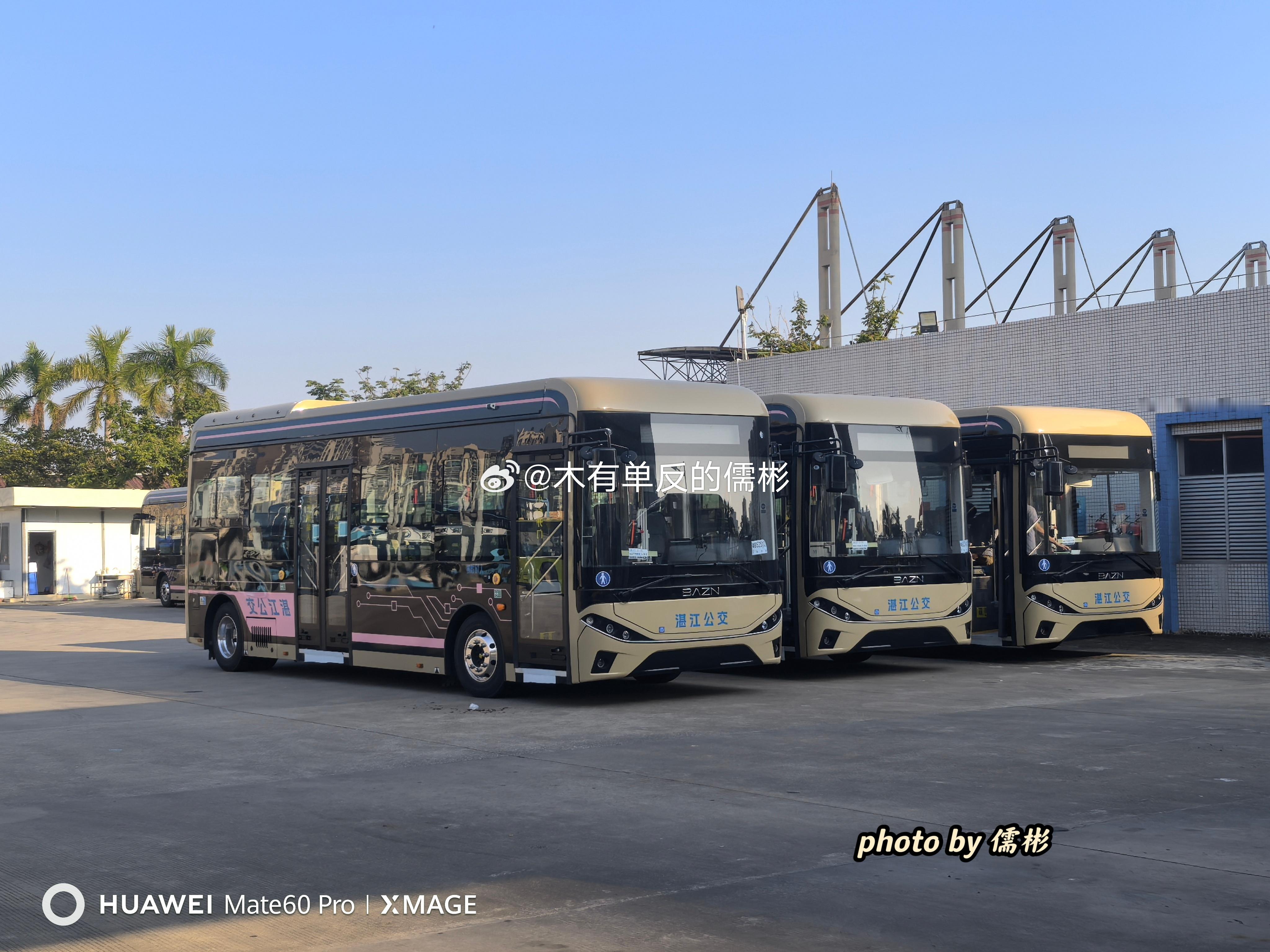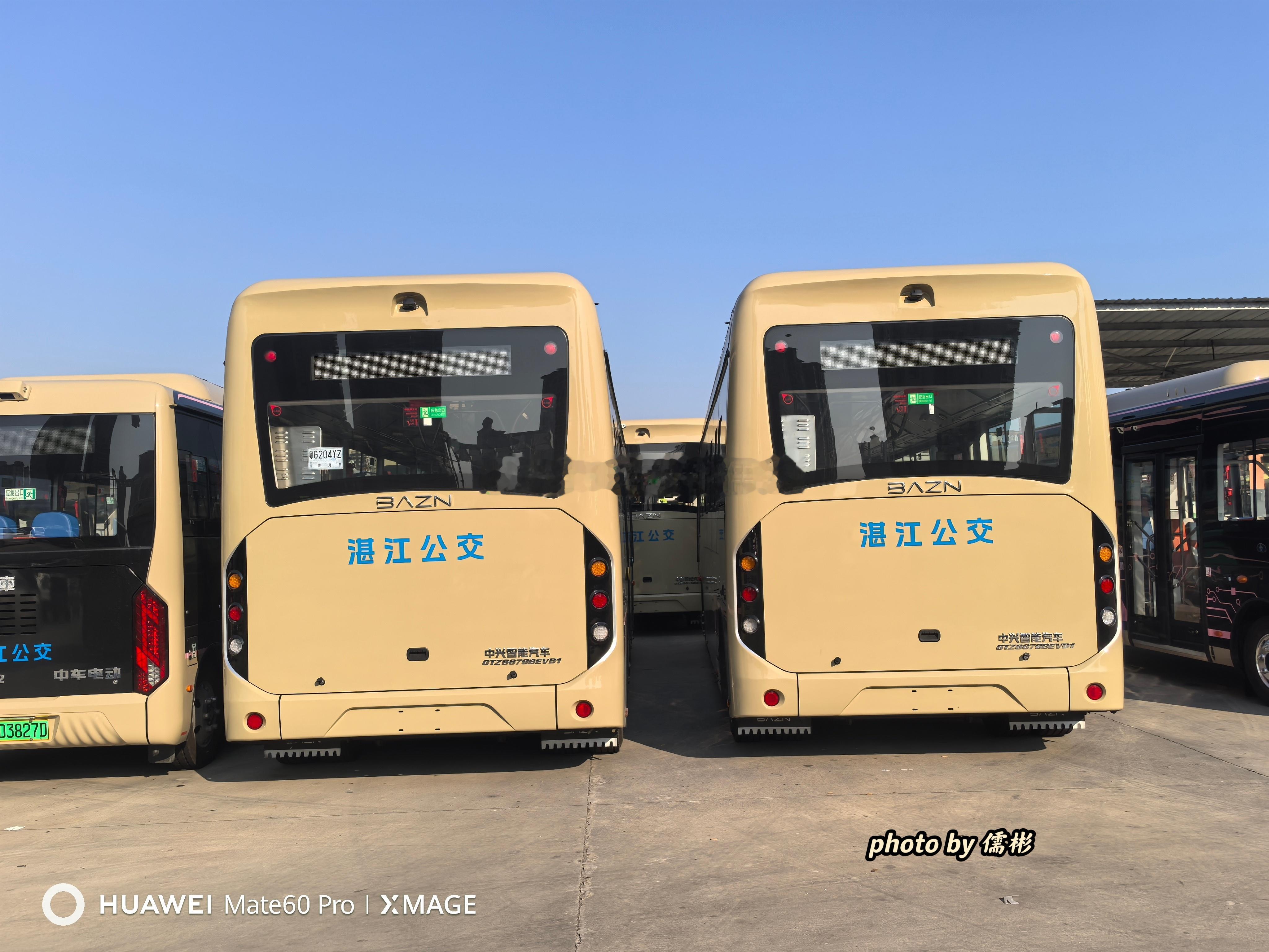 我村的新车慢报湛江公交年底采购的两款新车:40辆中车TEG6603BEV02和30辆中兴拜辰GTZ6879BEVB1已全部到货,据悉这是为了迎接湛江北站开通而准备的新车,这两款新车的字样去掉了“集团”二字最后发个国庆后一直镇场的拜辰双层