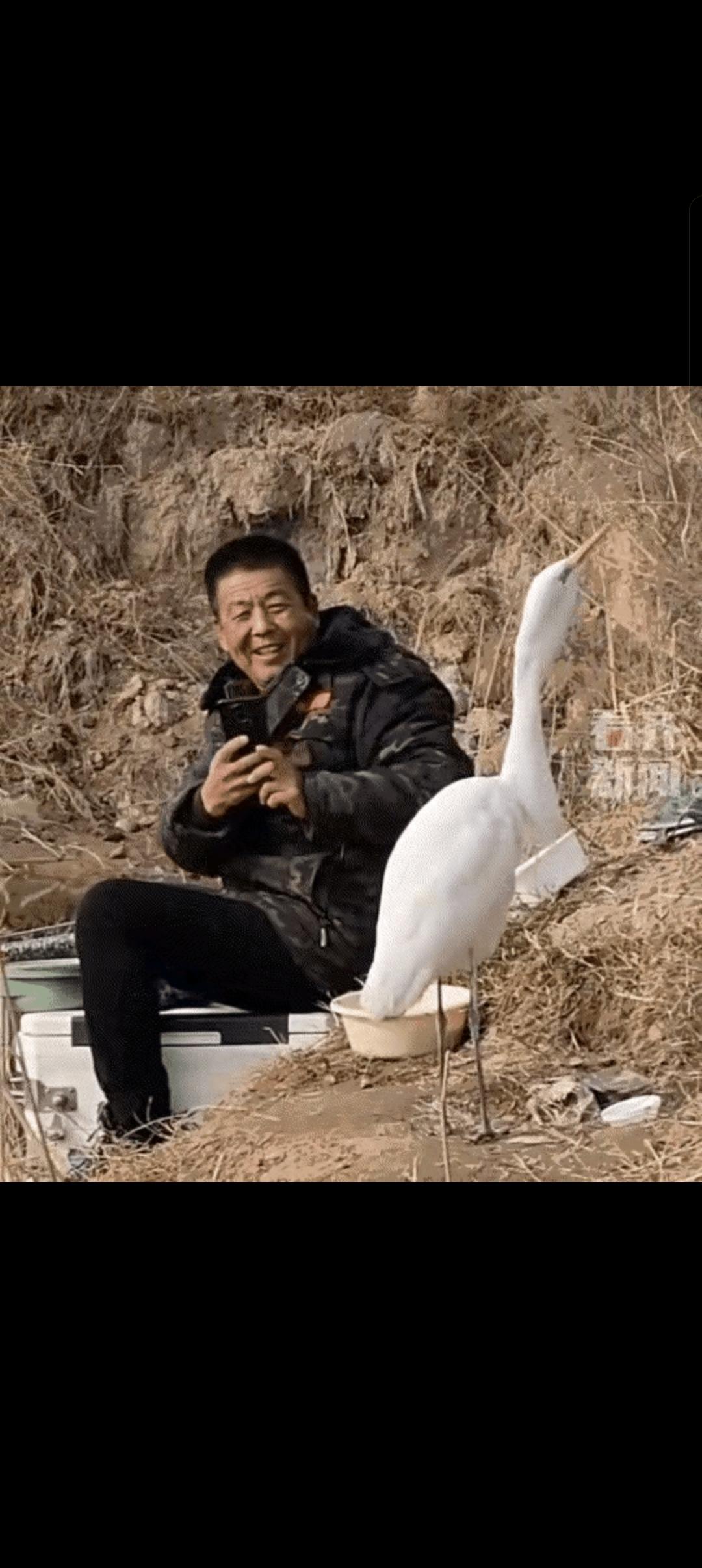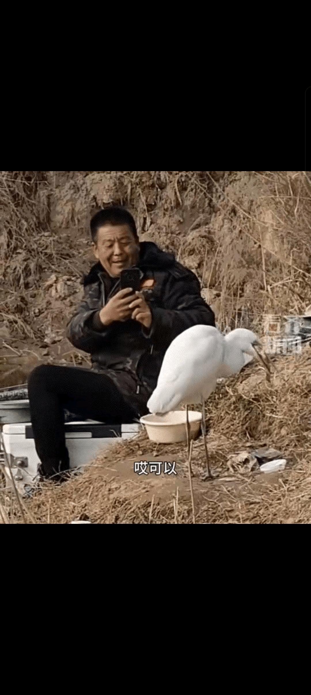 太和谐了!陕西,一男子在河边钓鱼时,竟看到旁边一位钓友,和一只野生白鹭和谐相处的一幕。视频显示,白鹭此时竟乖乖的站在这位钓鱼大哥面前,而大哥旁边盆里虽然钓了多鱼,但白鹭却并没有自己去抢食盆里的鱼,而礼貌的看着大哥,直至大哥将一条小鱼扔给它后,它才吃了那条鱼。而大哥趁其吃鱼时,也是一脸喜爱的为其拍照留恋。看着这和谐的场景,不知道的可能都以为白鹭是大哥养的呢。 ​网友评论: ​《白鹭缘》 漫步池塘边,雪衣涉水寒。 仁兄好面善,慷慨赐河鲜。 照影苔石侧,循香荻浦间。 犹疑窥浅浪,忽见获轻餐。 啄罢梳霜羽,归迟入暮烟。 江湖多机巧,何似两陶然。 ​ ​我也遇到一次。那天在郊外钓鱼,一只大长腿白鸟(不认识)飞到离我五六米地方落下,我就把钓上的小鱼扔给吃了,鸟也不走,一会扔一个,持续了一个多小时。 ​ ​真美,景色美,画面更美!极为罕见,人与白鹭同框成了朋友!看着很舒心,他与它无声交流,各有所获,妙哉! ​ ​这场景我也见过。也是有钓友喂了它小白条。但我见到的那只白鹭就没这只友好了,吃了人家一条鱼还不过瘾,后来改抢了,那位钓友推都推不开,只好又喂了两条大一点的才罢休。 ​