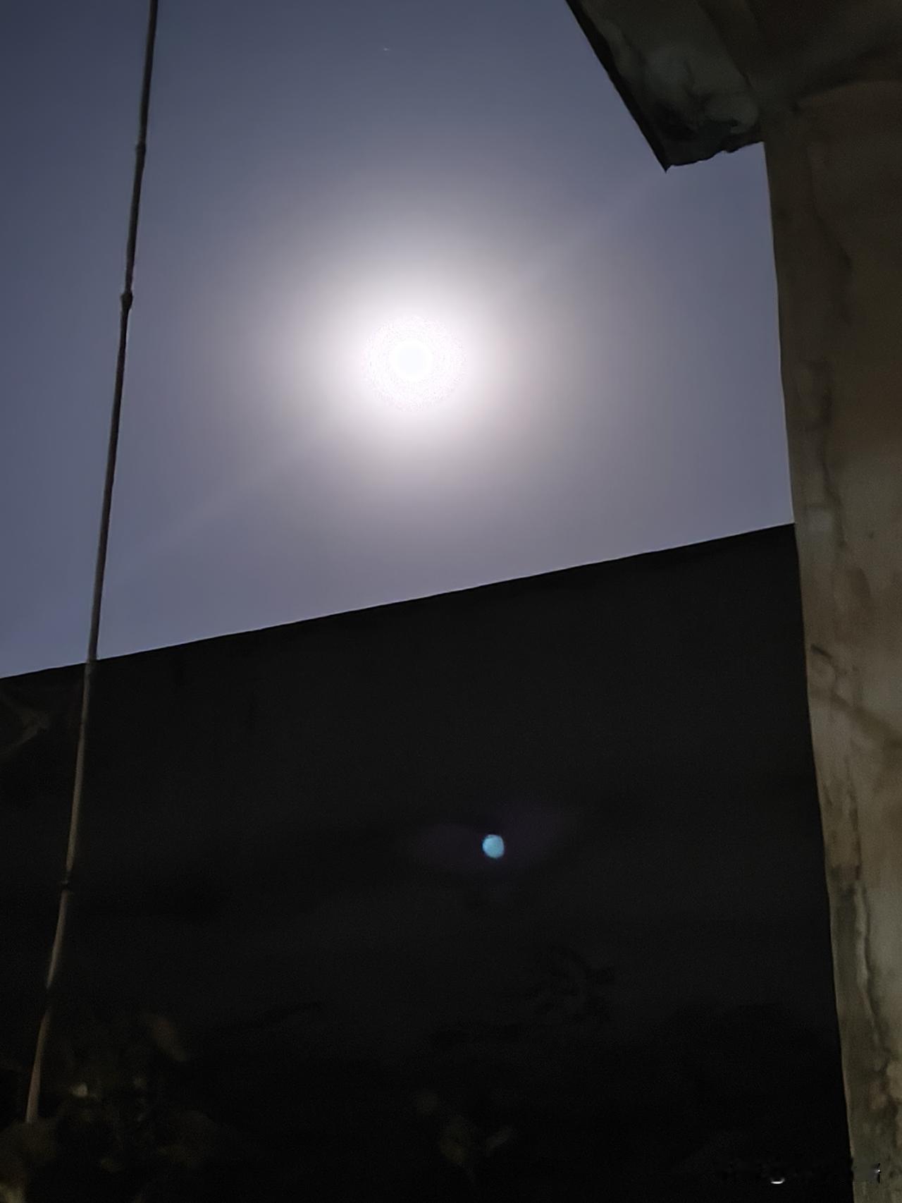 大半夜爬起来找水喝,一抬头愣了——月亮跟个大灯泡似的,挂在房檐上头亮得晃眼。 这货咋还不睡觉啊?是嫌星星下班早,自己顶班当路灯?还是偷偷看谁家窗户没关,瞅人熬夜刷手机呢? 我靠着墙盯它半天,它倒好,连个眨眼都没有,光裹着圈白蒙蒙的雾,慢悠悠悬着。得,估计是今晚风凉,它舍不得睡,想多吹会儿夜风吧。反正我是赶紧睡觉去,不在这陪它了!