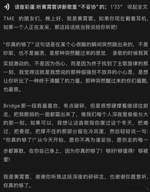 找到黄霄雲是天才的证据了,新歌一开口就沦陷,嗓音自带情绪张力,把委屈与倔强唱得直击人心,后劲大到循环停不下来,词曲编全程自己包揽,创作功底扎实到离谱,每一处细节都尽显才华,实力派歌手果然名不虚传