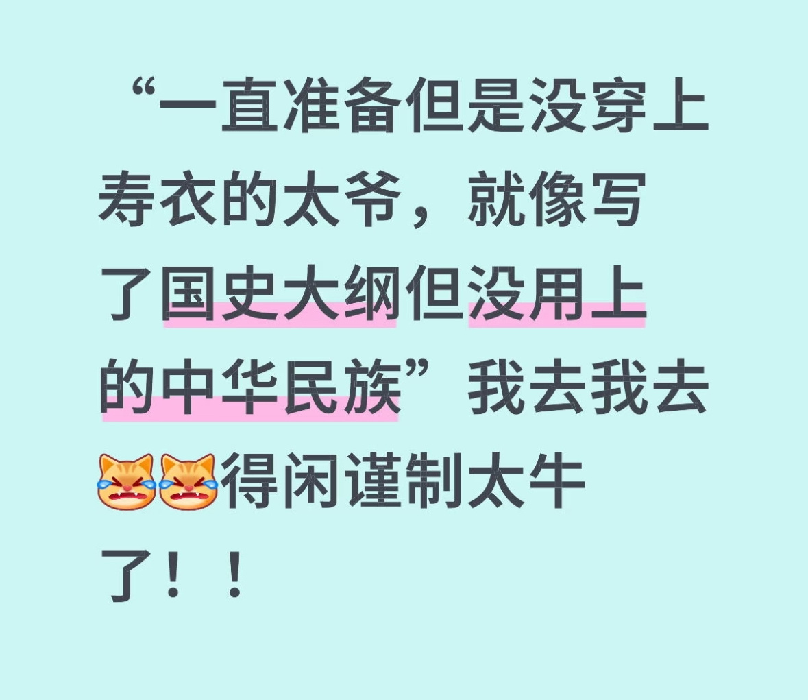 一直准备但是没穿上寿衣的太爷,就像写了国史大纲但没用上的中华民族。原来还有这么一个隐喻,看到这里我再次沉默了,还好最后一页是新的一页