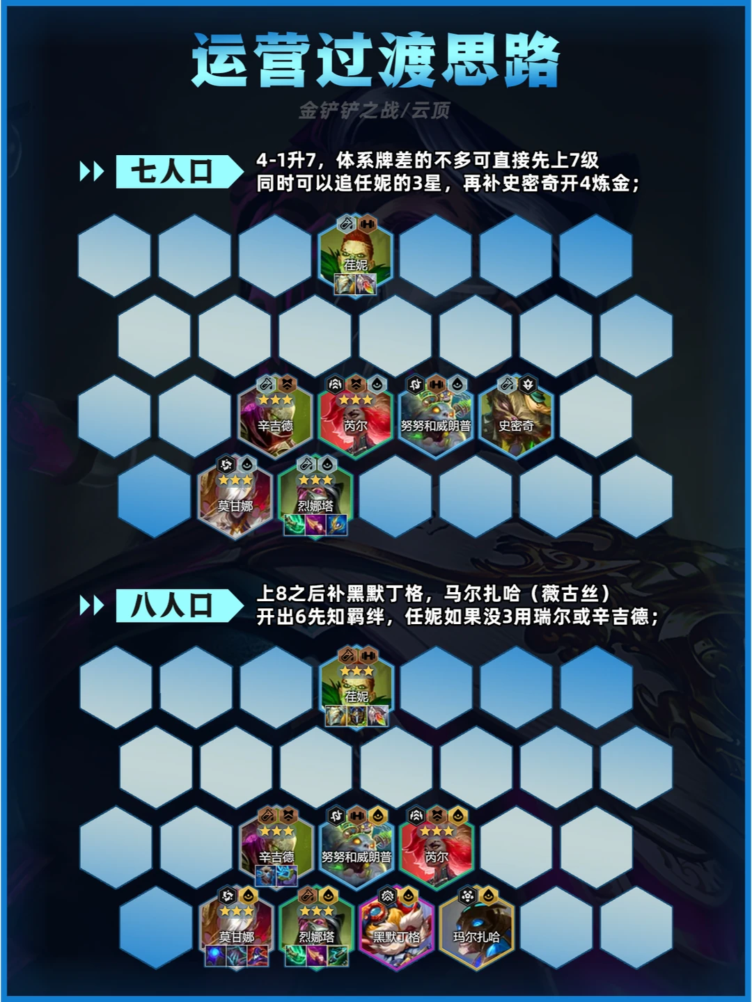 7人口成型:开4炼金+4先知,站位吃护盾!