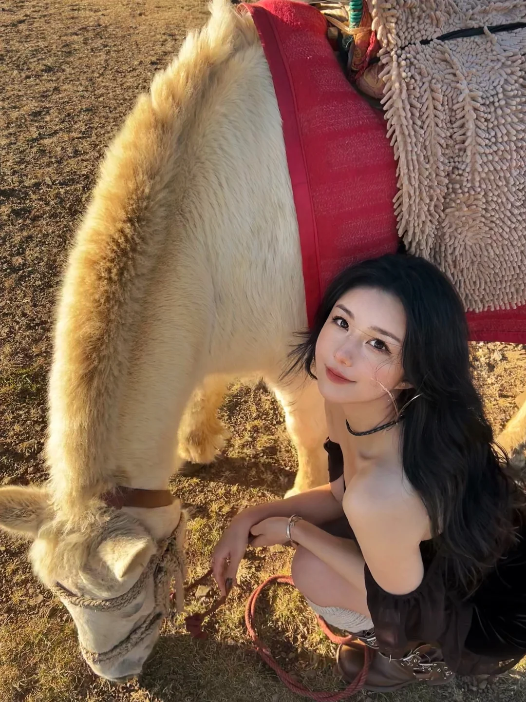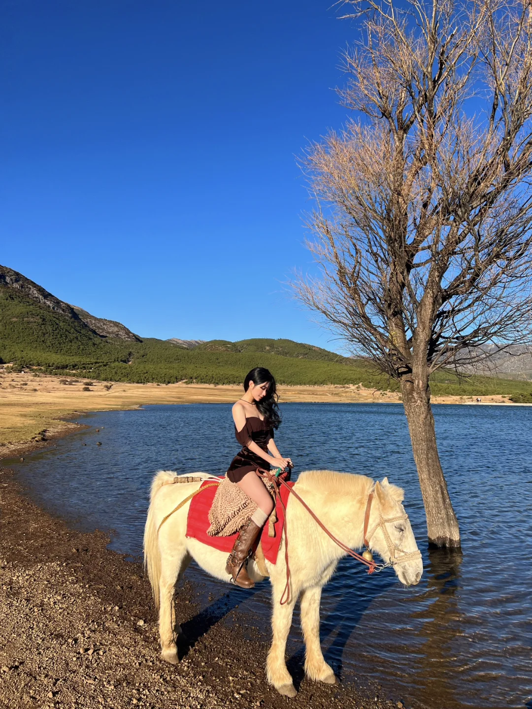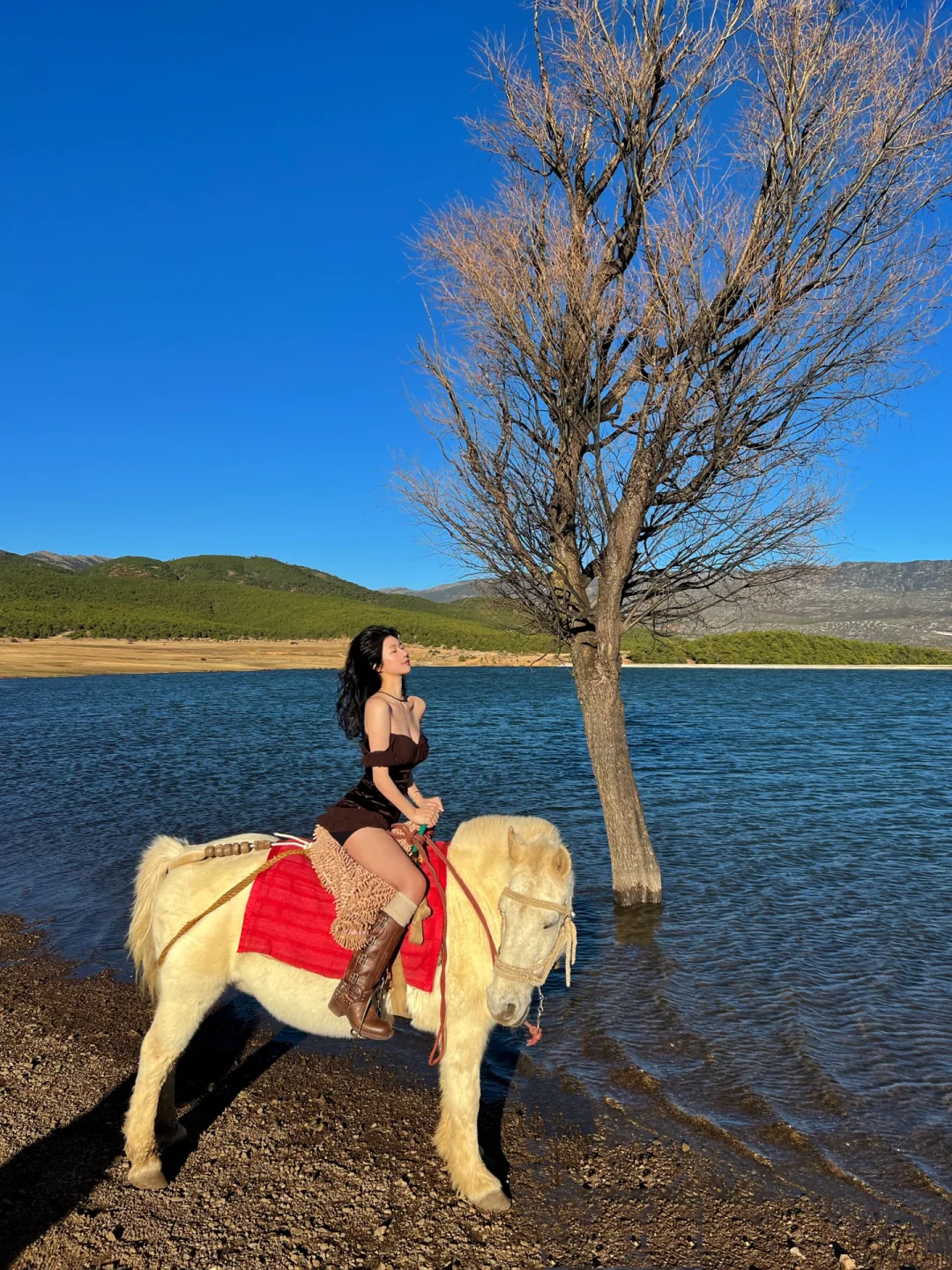🔸骑着马停在湖中孤独的树旁边拍照特别有意境
