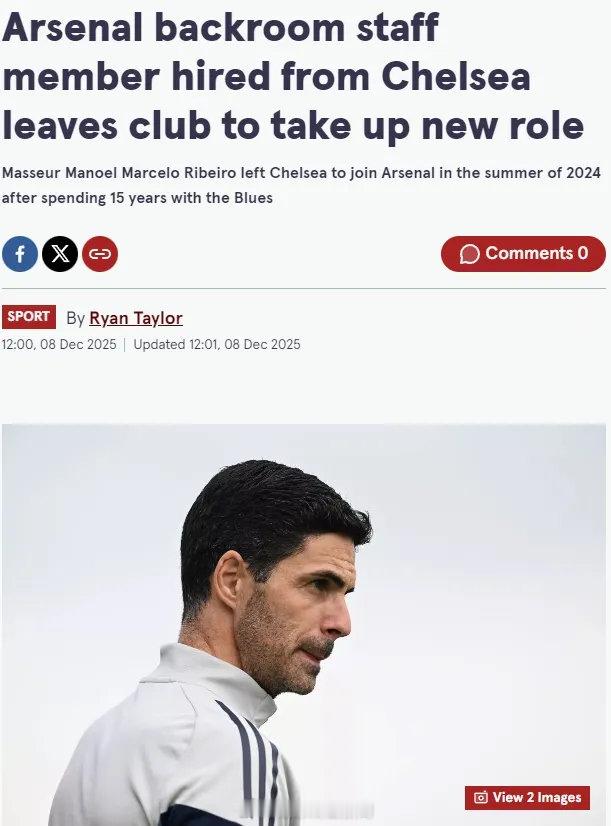 镜报记者RT消息,备受欢迎的软组织治疗师马诺埃尔-马塞洛-里贝罗已经离开阿森纳,这名在训练场上被称为“曼尼”或者“马努”的理疗师在2024年7月从切尔西加盟了枪手。报道称,当时这次任命曾被认为是阿尔特塔团队的重要调整,因为马努在2009年就加盟了切尔西,他在蓝军度过了收获颇丰的14年,且经验十分丰富,不过根据镜报的说法,马努现在准备离开职业足球圈,转而进军商界。据悉,除了加布里埃尔和马丁内利,马努在阿森纳工作期间和很多关键的一线队球员建立了亲密的关系,当年他在切尔西工作时据悉就和巴西(裔)帮的威廉、迭戈-科斯塔、大卫-路易斯、若日尼奥和席尔瓦等关系很好。
