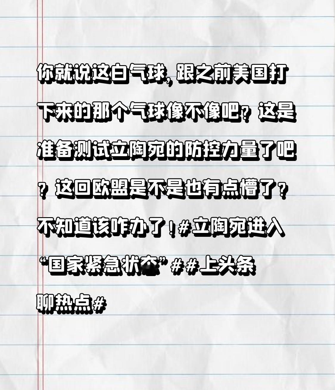 你就说这白气球,跟之前美国打下来的那个气球像不像吧?这是准备测试立陶宛的防控力量了吧?这回欧盟是不是也有点懵了?不知道该咋办了!
