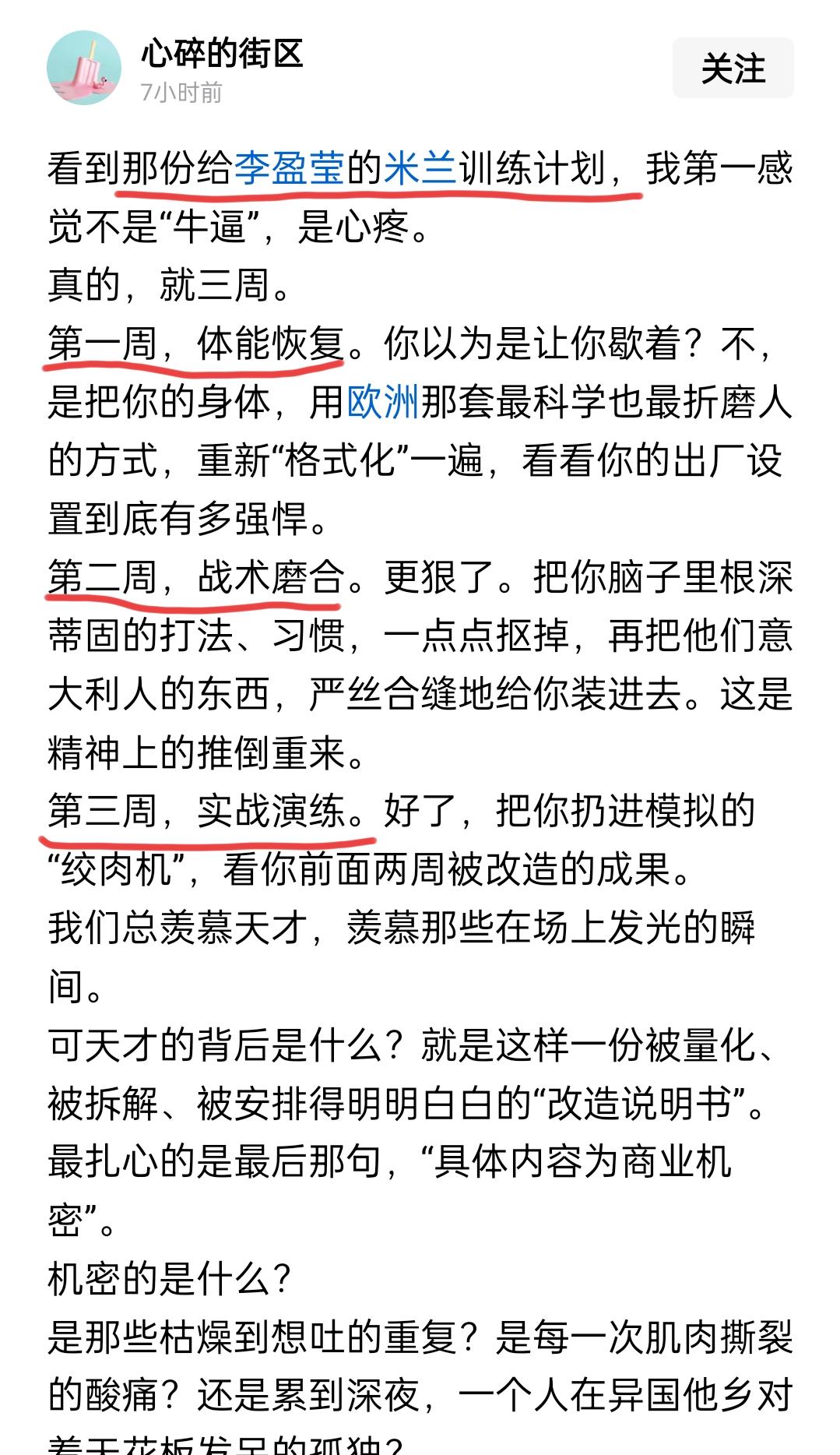 李盈莹最新消息:李盈莹不在米兰队中,所谓李盈莹在米兰队中单独训练或许是假消息 据新浪微博博主“Volley小站”发出了体征意大利米兰队的最新视频,名称叫做《米兰球员下厨新体验》。视频中,米兰队的15名队员一个不少,她们在厨房里集体下厨:有人在弄好吃的,有人在拍照,整支队伍其乐融融。 之前,有津粉莹粉发消息说李盈莹已经签约米兰队,而且在米兰队专门还给李盈莹单独训练、单独康复,甚至列出了第1周干什么第2周干什么第3周干什么,并猜测李盈莹12月15日将首秀参加比赛。 按照李盈莹的习惯,每次有重大事项,李盈莹都会发抖音动态。就在李盈莹出发前往意大利米兰之前连续发了两次动态,第1次是发的视频说自己已加入米兰,并表示“米兰见!”,第2次是李盈莹到达机场搭机前往意大利的动态。 李盈莹到达意大利米兰蒙扎就彻底消失了,李盈莹没有发动态,米兰队官方也没有向外界发关于李盈莹的消息,甚至还在官网下架了李盈莹的24号球衣。要不是球迷爆出一张在机场看见李盈莹,以及有球迷在米兰唐人街头偶遇李盈莹,还有孟子旋退役李盈莹在意大利的评论,球迷们还真的不知道李盈莹现在在干什么。 同批次的王媛媛、庄以珊、缪伊雯不仅到达了早前公布的俱乐部,而且分别都完成了自己的首秀。北京时间今天凌晨4点,缪伊文在世俱杯上已经代表哈萨克斯坦队打上了主力。 球迷朋友们,李盈莹现在到底与米兰队是什么关系,这流程到底是什么流程?该怎么走?欢迎在评论区告知。如果李盈莹在米兰队受到不公平的对待,那么中国球迷应该团结起来一致对外,帮李盈莹渡过难关。 福建 天津 四川 河南 中国女排