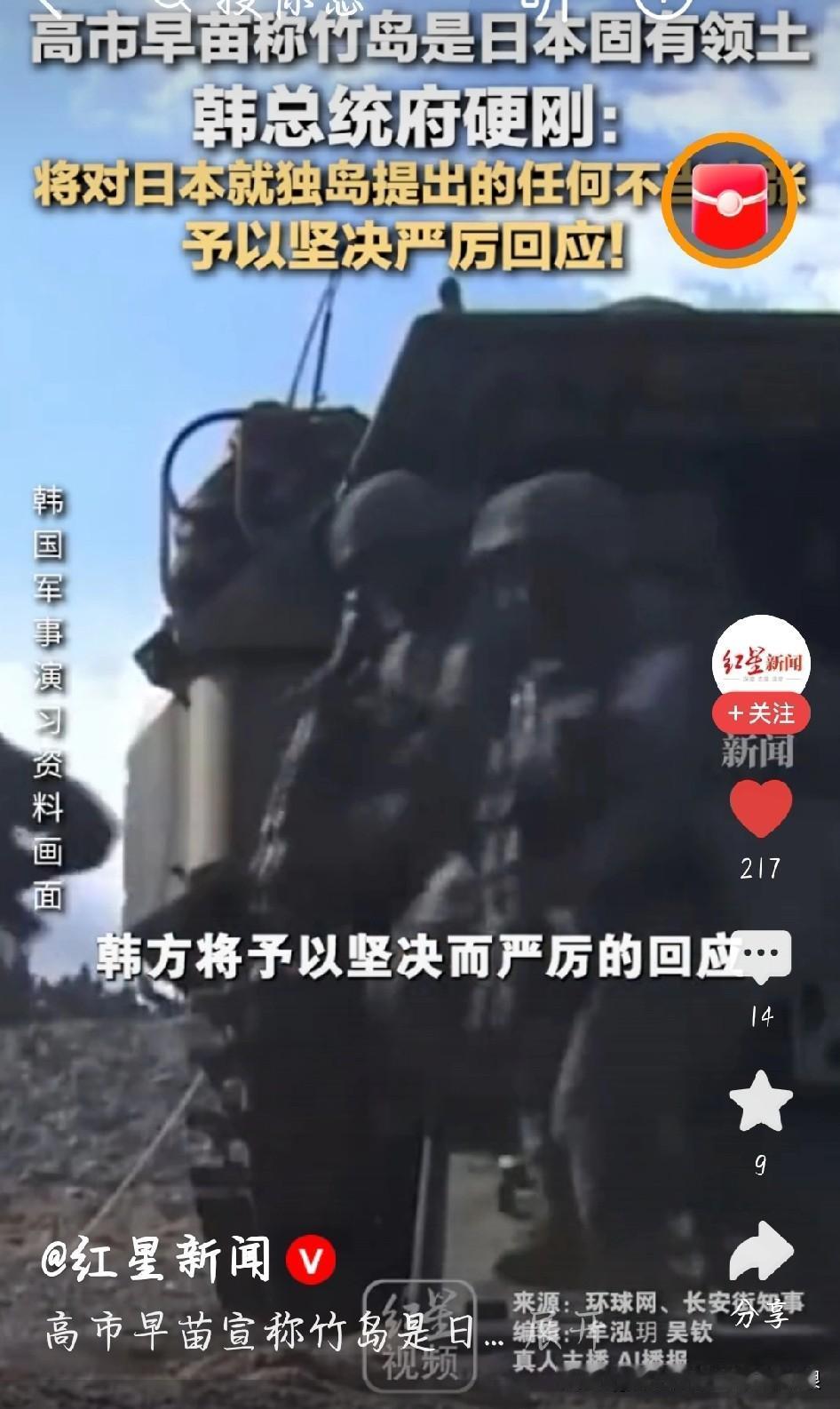 韩国硬刚高市早苗!独岛问题绝不退让 日本首相高市早苗真是没完没了,刚在台湾问题上乱说话引众怒,现在又在国会宣称独岛是日本固有领土。这一下直接惹怒韩国,总统府当场硬刚,说独岛是韩国的,对日本任何不当主张都要坚决严厉回应! 高市早苗上台后就没安分过,又是鼓吹“台湾有事”,又是要增加军费扩军,现在还想抢独岛,明显是在挑事。韩国和日本在独岛问题上本来就有争议,她这时候火上浇油,就是不想让地区安宁。 周边国家谁也不是软柿子,台湾问题是中国内政,独岛是韩国领土,不是她想怎么说就怎么说的。想搞军国主义那套、到处挑衅,迟早得碰钉子! 韩国硬刚高市早苗 韩日独岛争议 高市早苗下台 图片截图于网络