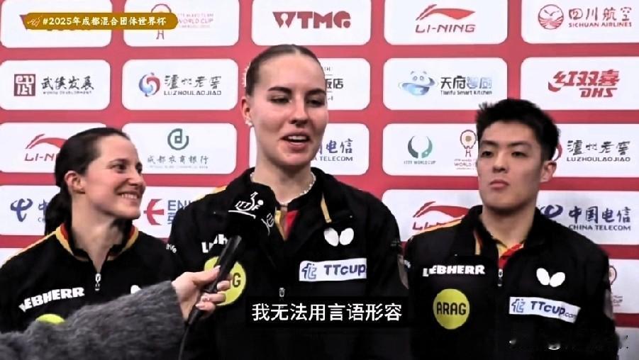 赛后采访,考夫曼把邱党带沟里去了! 首先说明我不是看美女哈! 主要看她们的直爽劲! 德国8:7赢了韩国队, 考夫曼说: 我们能赢下比赛, 太棒了! 我今天发挥的也非常好, 节奏把控的非常好, 我们的调动也非常积极, 不知道用什么语言形容了! 似乎邱党也被考夫曼带偏了, 张嘴用中文说: 我觉得我们打的非常好...... 哈哈,考夫曼说的时候, 没不懂,看她很激动, 回头看的翻译, 但是邱党用中文说, 我可听懂了![呲牙]