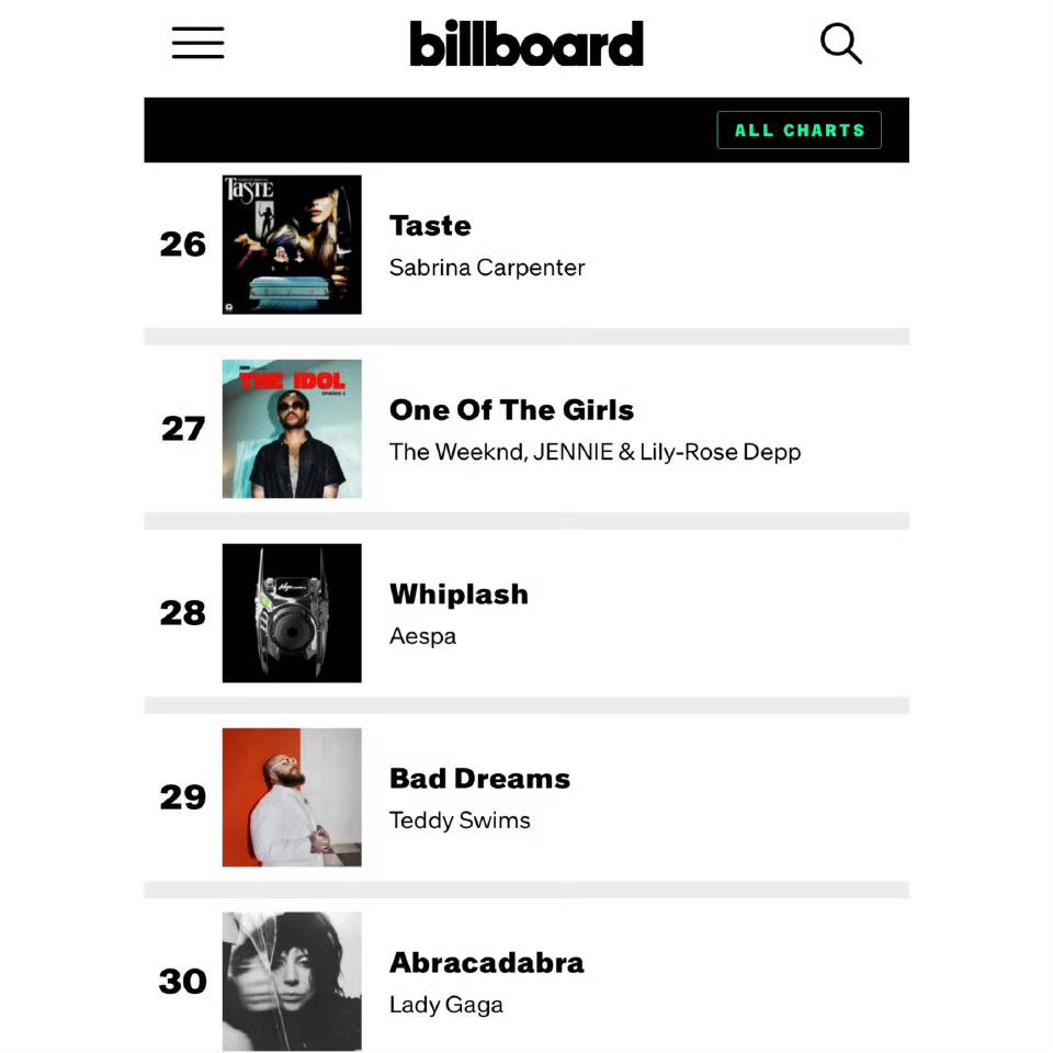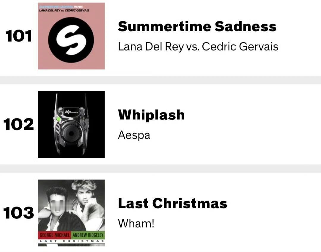 billboard年榜aespa排名 billboard专辑年榜出炉!aespa歌曲whiplash年榜排名最高,位列年榜102名,也是Billboard Global Excl. US 2025年榜上最高的kpop组合歌曲,位列年榜28名;全球年终艺人排行榜kpop组合aespa排名最高。