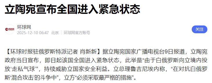立陶宛宣布国家进入紧急状态!但此刻的特朗普政府会注意吗?   12月9日,立陶宛