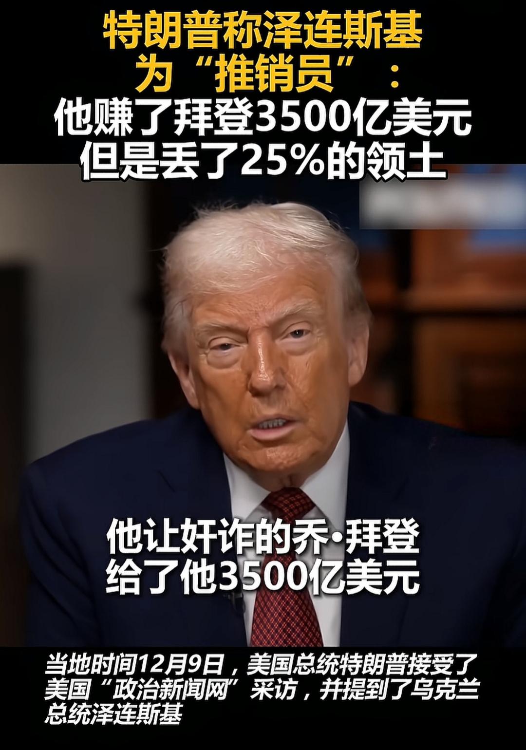 销冠斯基! 据权威媒体12月9日报道,特朗普给泽连斯基颁了个“行业新头衔”—