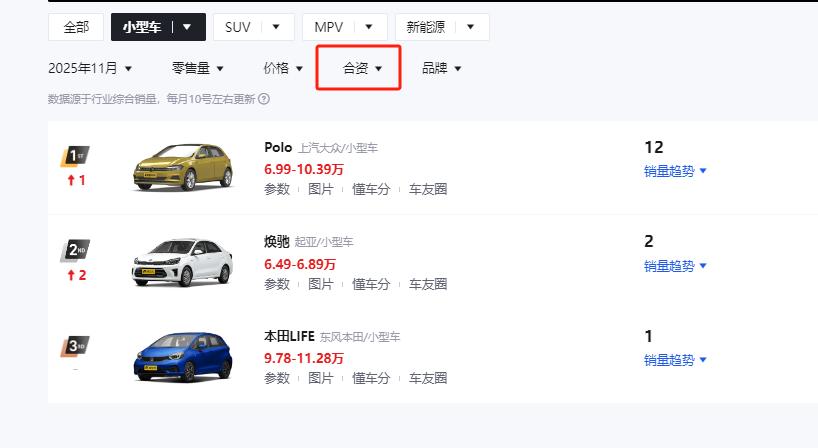 本田飞度的月销量归0了? 继上个月3台的月销量之后,11月份已经找不到本田飞度的销量数据了,这个曾被一些人吹捧为“50万内最好的车”难道要停产了吗? 值得注意的是,改款的飞度早在今年4月工信部第394批新车申报目录中就申报了,为何迟迟没有进行更新呢?我觉得这个改款的前脸是真“漂亮”啊,哈哈哈。 其实不仅是飞度,与之同平台的本田LIFE 11月的销量也只剩1台了,而整个合资品牌的燃油小型车,POLO销量为12台,起亚的焕驰为2台,合资品牌的燃油小型车时代基本就要告别了。取而代之的则是自主品牌的电动车,比亚迪海豚、MG4、五菱缤果、极狐T1这些车型了。【来自懂车帝车友圈】