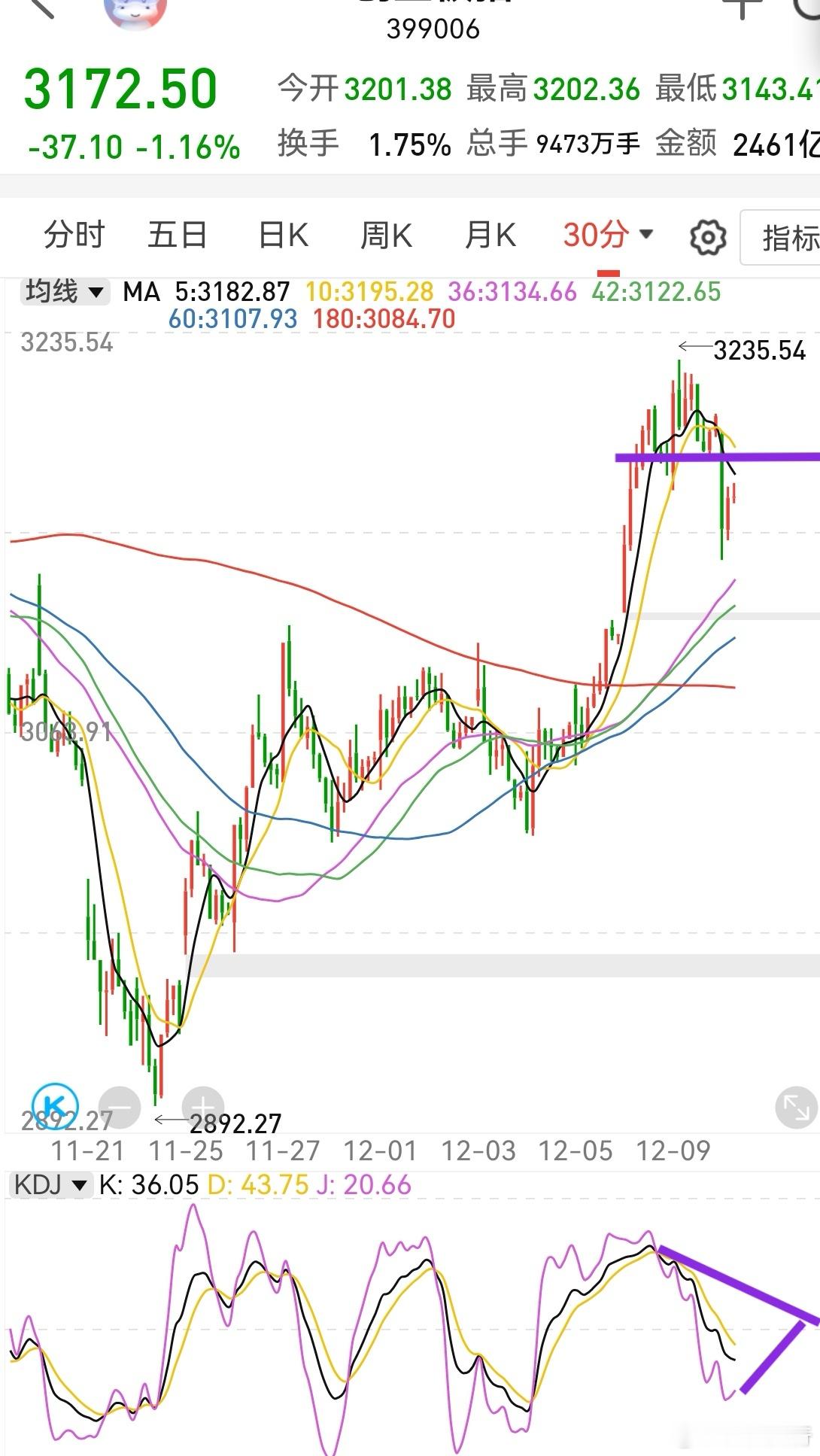市场很难操作,报团托指数,造成的就是个股失去方向,只有强者恒强逻辑。最近几年,A股似乎一直是强者恒强逻辑,缺乏价值逻辑。创业板不能很快收复3185,也就是早上收盘必须要站上,站不上这个位置,那么就是均线在收拢,就越来越走向这两天分析的结果。
