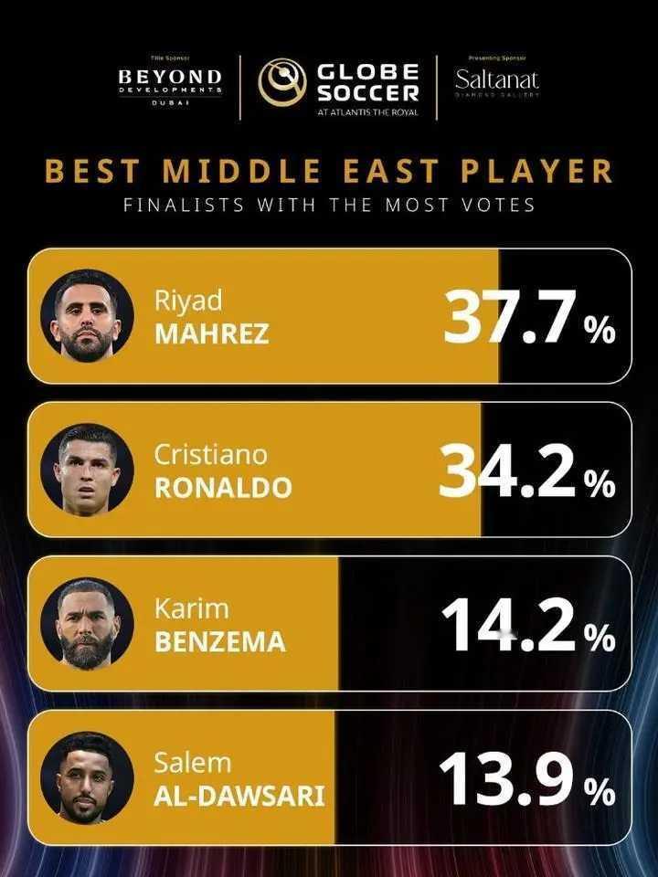 C罗3年0冠遭逆转!天价年薪不敌马赫雷斯双冠王,中东最佳球员投票跌落神坛