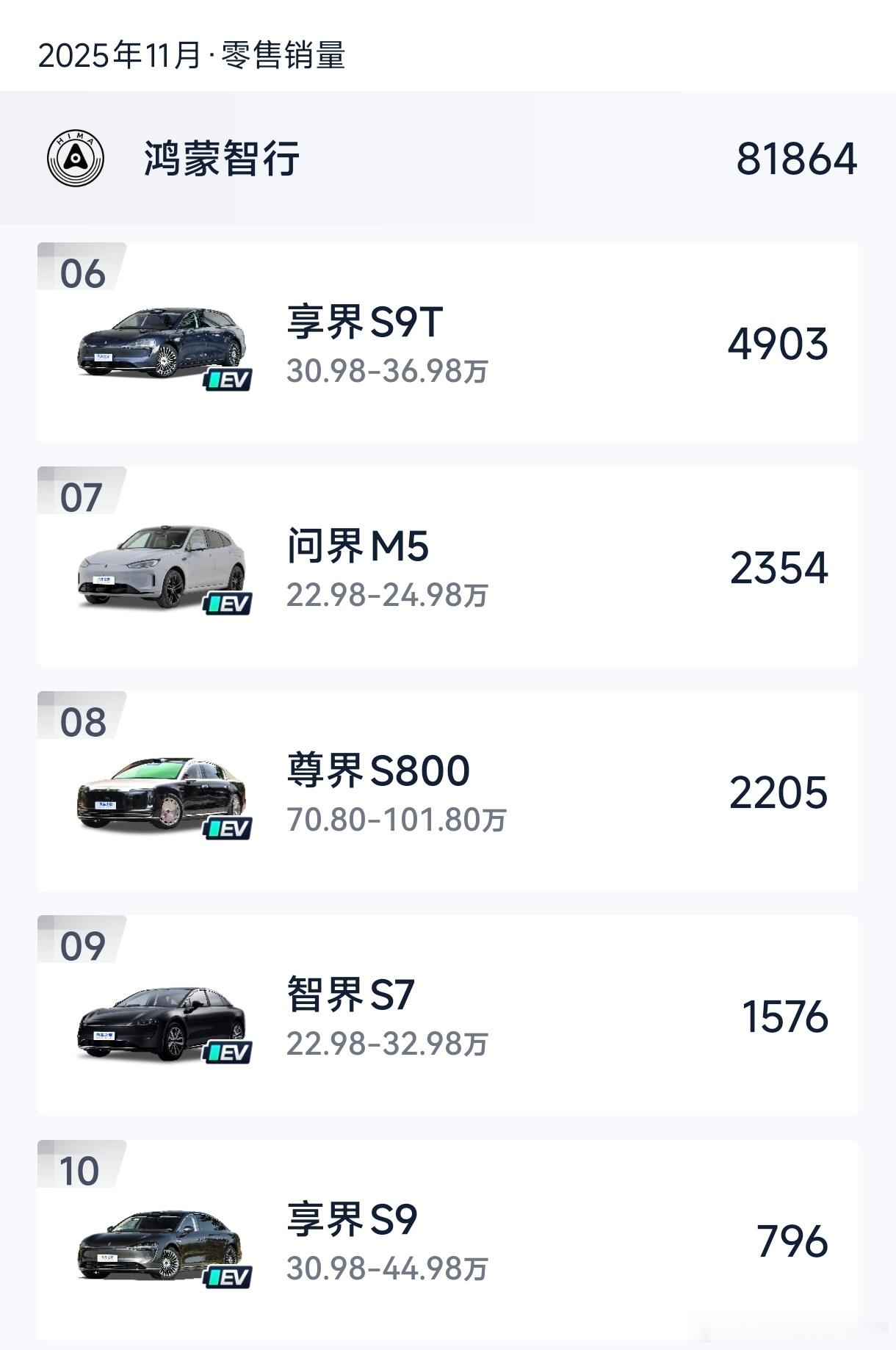 鸿蒙智行享界12月交付目标过万冲击一万销量有挑战也不是不可能S9T似乎卖的挺好,S9再努努力还是可以的