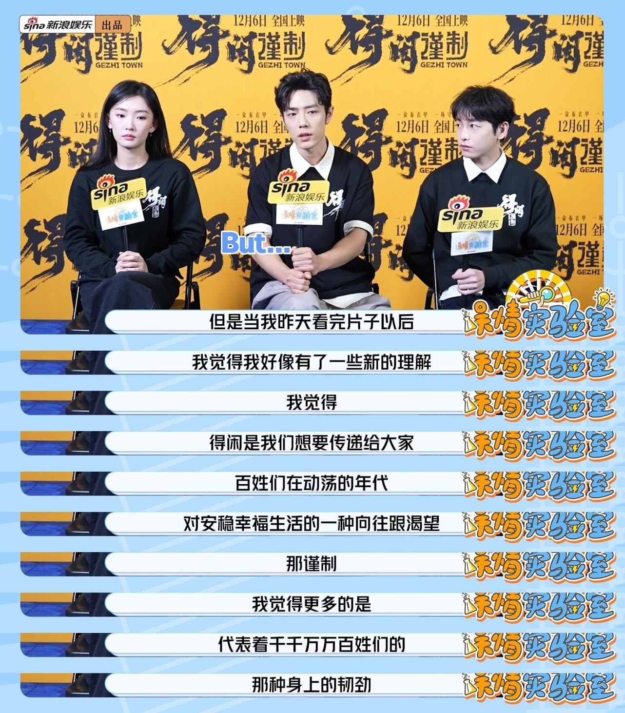 得闲谨制肖战看片后对得闲谨制的新理解肖战说得闲谨制歌词都是片中台词《得闲谨制》剧组做客新浪娱乐出品《娱情实验室》先导片来啦 肖战聊对《得闲谨制》的理解变化,从最初的字面认知,到看懂背后的百姓向往与韧性更多精彩内容,期待正片吧!跨年电影愿