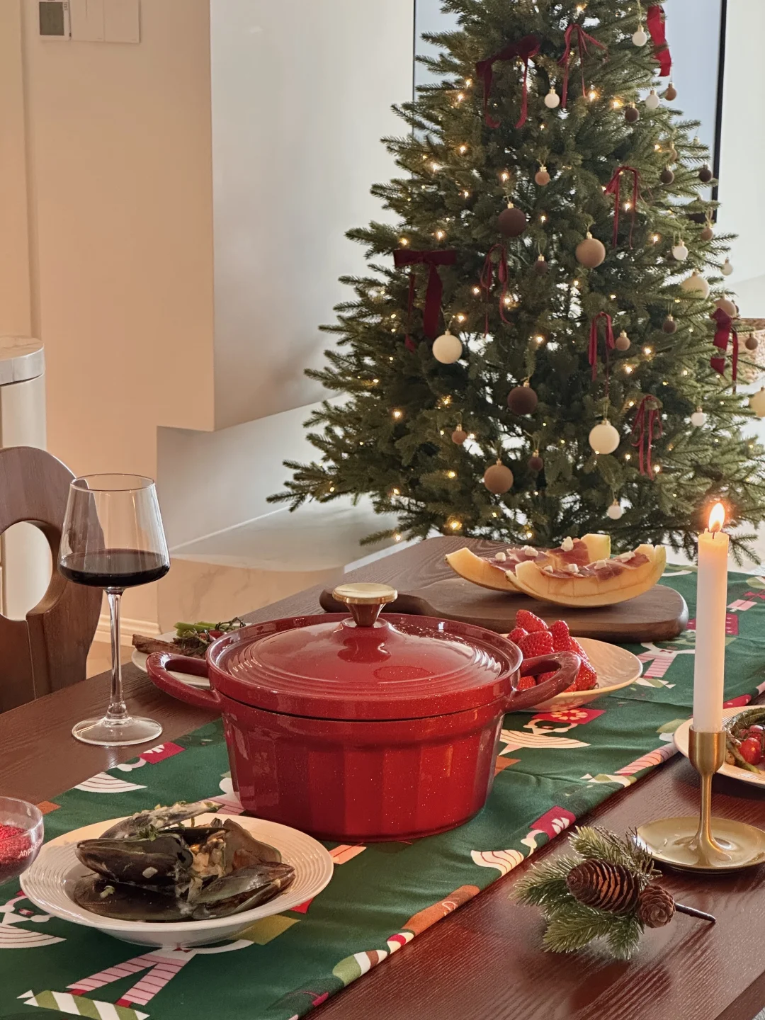 心急的人先过圣诞🧑🎄 92平小屋已经提前开启圣诞氛围啦 给大家提供一个圣诞布置思路~ 新家必须仪式感拉满!♥️ 翻出刚入手的北鼎珐琅锅 红亮的釉面配圣诞装饰也太搭了吧~ 炖煮时咕嘟咕嘟🥣的声响 连做饭都变成治愈小事! 做了法式红酒炖牛肉、奶油青口贝 还烤了羊排✨ 食材在锅里慢慢入味 出锅时色泽鲜亮到忍不住拍一百张📸 沉甸甸的锅身锁温超棒 保温到饭后还是热乎的~ 颜值和实用性双在线! 用好看的锅具做饭 连幸福感都翻倍呀~ 这个圣诞🎄 把法式浪漫和烟火气一起端上桌❤️吧~ 🛒:北鼎珐琅锅