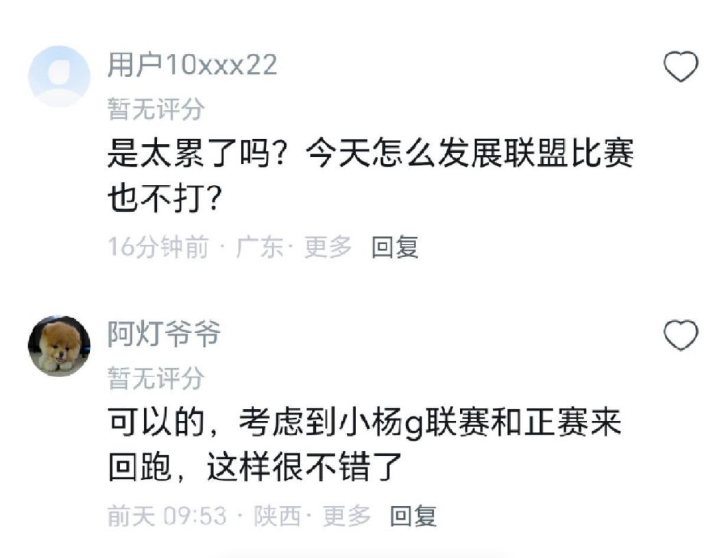 最近连轴转,比赛强度也挺大的,好好休息小杨