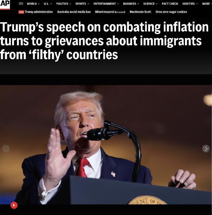【最新!特朗普抱怨:为什么美国收垃圾国家移民?】 当地时间12月9日,美国总统——特朗普在美国宾夕法尼亚州的公开集会上针对美国移民政策发出质问,质疑为何美国接收来自他口中“垃圾国家”的移民,而非更多来自挪威、瑞典等北欧国家的移民。 特朗普在讲话中直接质疑:“为什么我们只接收那些‘垃圾国家’的人?为什么不能引进一些挪威、瑞典的移民,哪怕只是少数?” 与此同时,他还明确表示反对接收来自阿富汗、海地、索马里等地的移民,并将这些国家描述为“地狱般国家”、“灾难之地,肮脏不堪、充斥着犯罪,令人作呕”。 最后,他还提出了一个明确的倾向性建议:希望美国能吸引更多来自挪威、瑞典等斯堪的纳维亚(北欧)地区的移民,认为这些国家的移民优于他所点名的那些国家的移民。 @王爷说财经 认为,特朗普这番言论的背景是他试图将焦点放在对抗通胀的施政重心时发生的偏离。 对此,你怎么看?你如何评价特朗普这番言论?