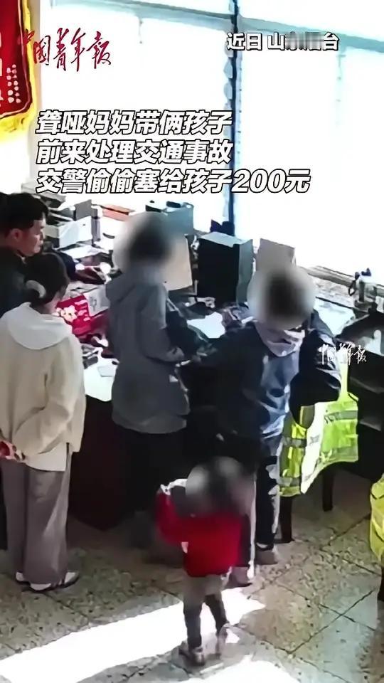 聋哑母亲接娃剐蹭汽车,带儿女报警,交警看孩子们衣着单薄,悄悄塞给小姑娘200元 近日,山东烟台的一名小姑娘领着聋哑母亲和弟弟跑到牟平分局交管大队报警称,妈妈骑电动车接弟弟放学,把别人的车蹭了。但是找不到车主,问应该怎么处理。 在这个快节奏、充满压力的社会里,或许我们早已习惯了“事故不就是责任和赔偿”的公式,也渐渐忽视了那些被忽略的角落。然而,近日发生在烟台的一个小故事,却温暖了无数人的心,也让我们重新审视“善意”与“责任”的真正意义。 那天,一对聋哑母子带着弟弟,走进了交管大队的办公室。母亲骑着电动车,接送弟弟放学,突遇“意外”——一辆车被刮蹭了。没有车主,现场一时难以理清责任,但这并没有让母子焦虑不安,反倒展现出一种令人动容的坦然和善良:他们没有推诿,也没有逃避,只是用最质朴的方式,寻求一个合理的解决方案。 更令人心碎的是,交警王琨注意到这个家庭的衣着:母亲聋哑,靠手势沟通;11岁的女儿,身上的裤子破了一个洞,弟弟只穿着棉裤。面对这样的困境,王琨没有冷眼旁观,而是用一种温暖的方式,递出了200元的善意。 这200元,也许对他们来说,只是一份微不足道的帮助,但却折射出一份真诚的人性之光。那一刻,没有复杂的道德评判,也没有冷冰冰的责任推卸,只有一个普通交警的善意流露:希望这个家庭能感受到社会的温暖,知道他们并不孤单。 或许,这个故事让我们反思:在法律和责任的框架之外,善良和同情心才是真正温暖人心的力量。我们常常在繁忙中忽略了那些需要帮助的家庭、那些处于困境中的生命。而一份简单的关怀,也许就能点亮他们心中的希望。 同时,这也提醒我们,社会的温度不仅仅在于规则的执行,更在于每个人心中那一份善意的火苗。我们是否能在日常的点滴中,成为那一束温暖?是否能在看到别人困难时,伸出援手,而不是冷漠地绕过? 这个故事的传递,不仅仅是关于一场“刮蹭事故”的解决,更是一个关于人性、关于善良的深刻启示。它告诉我们:在这个世界上,善意从不会过时,每一个小小的善举,都有可能成为他人生命中的一道光,照亮前行的路。 让我们记住这个温暖的瞬间,把那份善良带进自己的生活中。只有当我们每个人都愿意多一点理解、多一点包容,这个社会,才会更加美好。而那200元,也许只是一份微不足道的帮助,但它背后所传递的,是我们共同的温暖和希望。