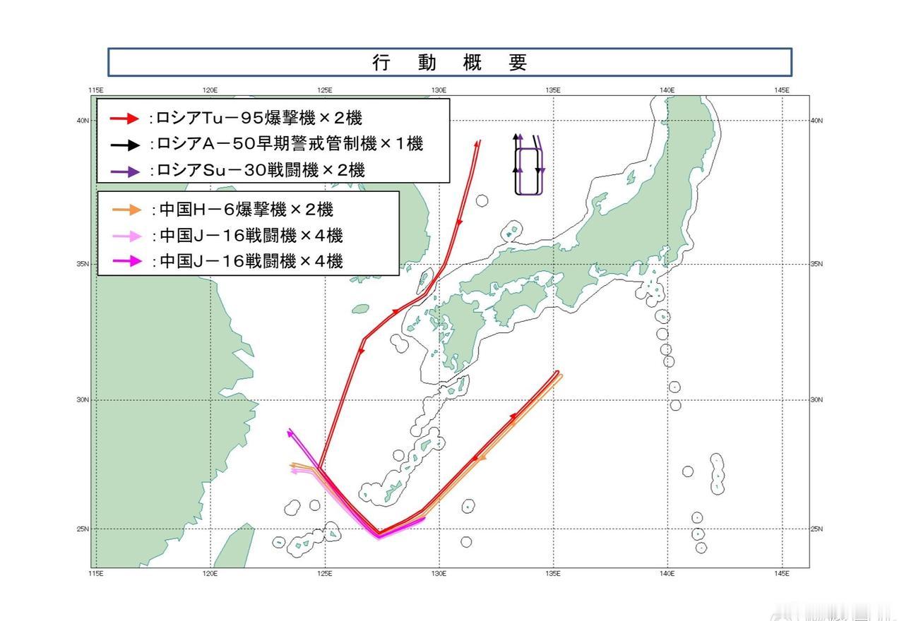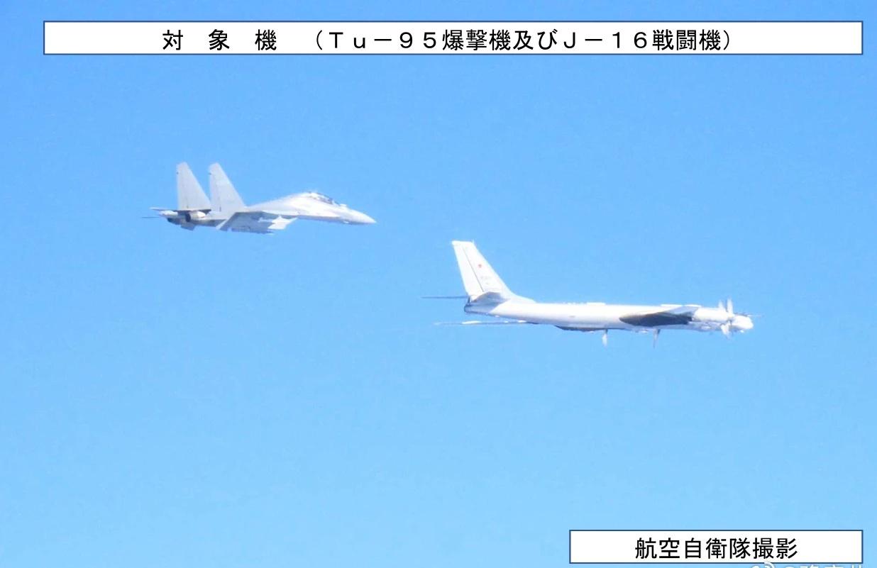 日本自卫队统合幕僚监部12月9日发布公告称,12月9日上午至下午期间,确认到2架俄军Tu-95MS轰炸机从日本海飞往中国东海,两架Tu-95MS在东海上空与2架中国轰-6K轰炸机汇合后,实施了从东海至四国近海太平洋的长距离共同飞行。 同时确认到,上述轰炸机编队在冲绳本岛与宫古岛之间往返飞行时,有歼-16战斗机护航。此外,在日本海确认到1架俄军A-50预警机和2架Su-30战斗机。 日本自卫队统合幕僚监部称,针对上述活动,日本航空自卫队已紧急起飞西南航空方面队等所属战斗机实施应对。