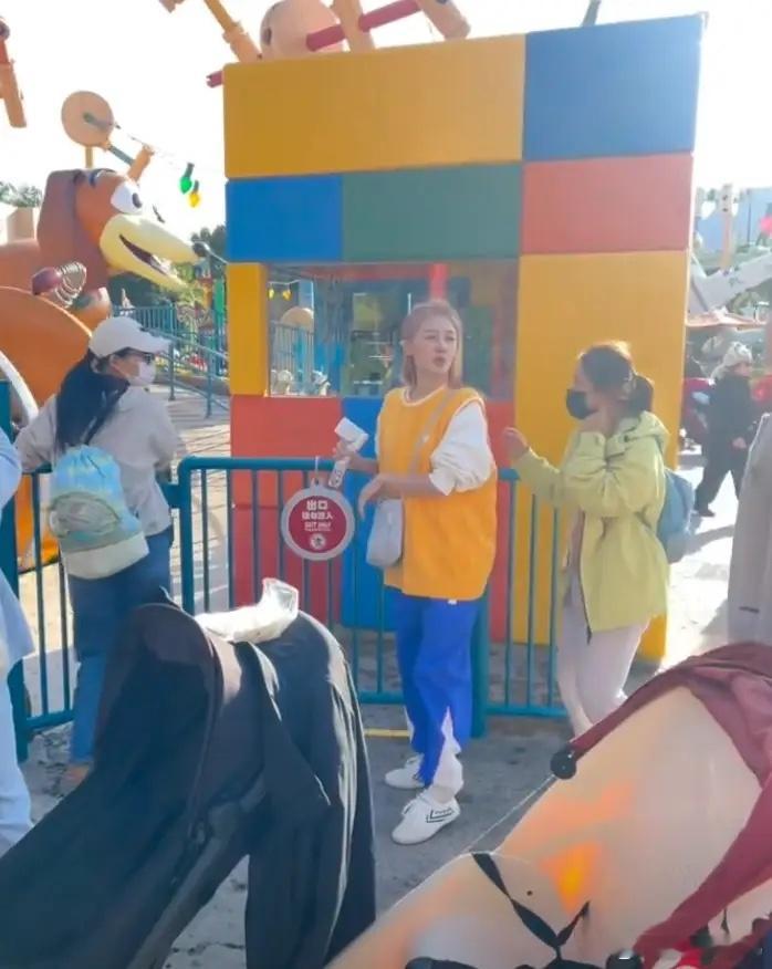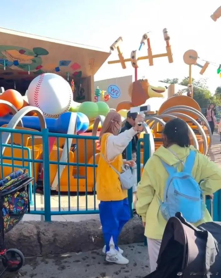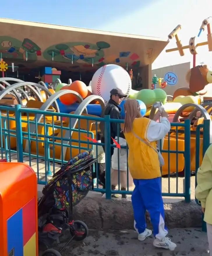 郑恺一家游玩,牵着老大老二又没带小女儿,苗苗打扮女团白又美!!!