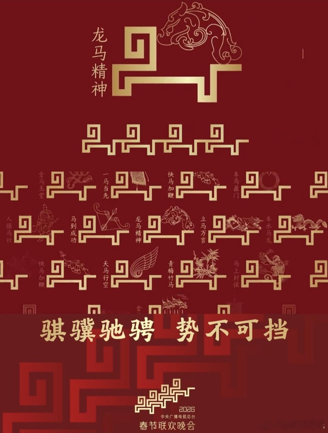 马年春晚官宣2026年春晚标识有点东西!既保留了传统纹样的秩序之美,又赋予现代设计的灵活张力,这审美和创意满分10分你们打几分