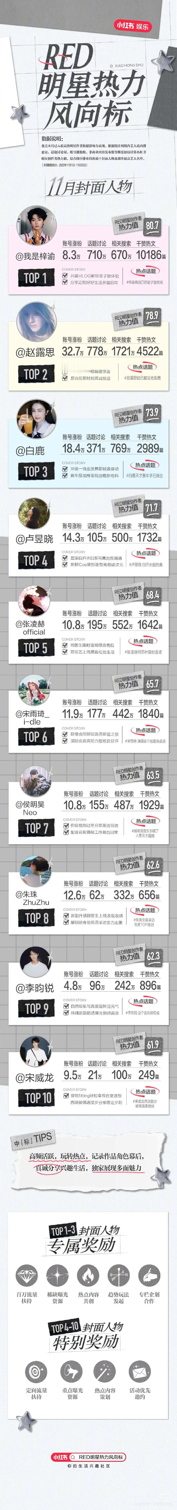 小红薯11月封面人物 前三名梓渝、赵露思、白鹿