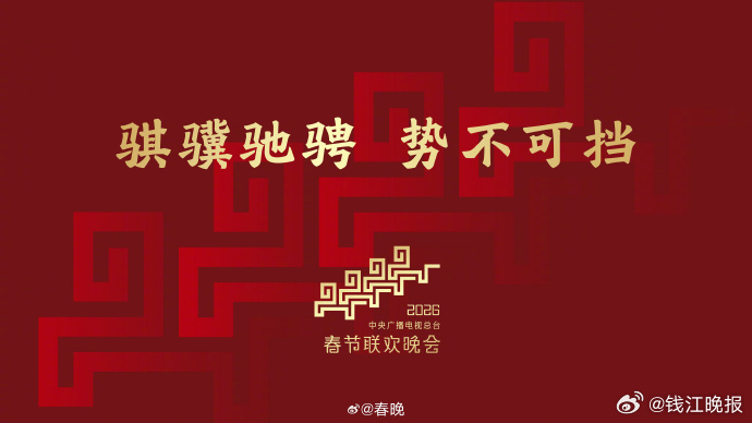 【骐骥驰骋 势不可挡!2026年总台春晚主题、主标识发布】#马年春晚官宣# 骐骥迎春至,万象启新程!12月10日,中央广播电视总台《2026年春节联欢晚会》发布主题和主标识。总台马年春晚以“骐骥驰骋 势不可挡”为主题,在欢乐吉祥、喜气洋洋的氛围中,与全球华人相约除夕夜,共赴一场昂扬奋发、喜庆温暖、满屏新意的文化盛宴。《楚辞·离骚》中写道:“乘骐骥以驰骋兮,来吾道夫先路。”“骐骥”是古人对骏马、千里马的雅称,凝聚着中华民族开拓进取、驰而不息的精神品格;又音同“奇迹”,传递出创造奇迹的决心和一往无前的信心,饱含对新时代新征程满怀期冀的美好愿景。 2026年#春晚#主标识从晚会主题“骐骥驰骋”中提炼“四马齐驱”的创意灵感,巧妙融合中国传统云纹、雷纹、回纹的经典元素,勾勒出四匹骏马齐头并进、拾级而上的视觉意象,既彰显传统美学韵味,又传递出奔腾奋进的时代气息。全新设计的“骐骥驰骋纹”还能无限延展、变换、循环,铺展出万马奔腾、势不可挡的生动画卷。
