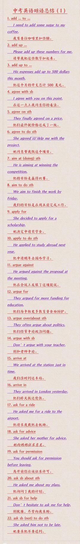 中考英语短语总结(1) 学好英语最好的方法不是背单词而是背句子。