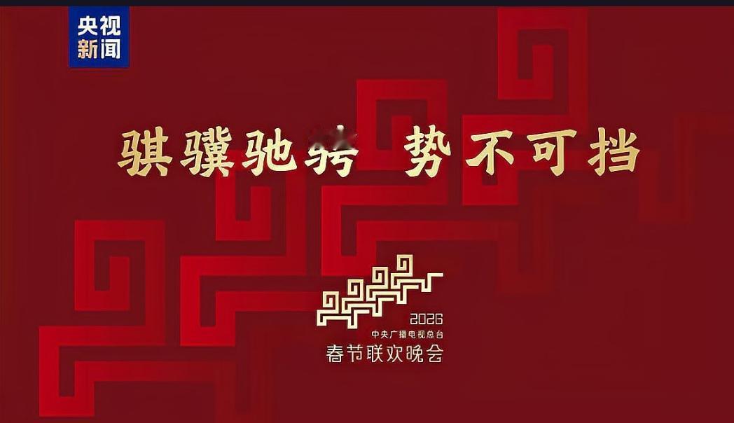 2026春晚主题太燃!四骏奔腾寓意绝了 2026央视马年春晚官宣啦!主题“骐骥驰骋 势不可挡”一听就超有劲儿,还藏着“奇迹”的谐音梗,满是奋进的盼头 ! 主标识更是惊艳,四匹骏马齐头并进、拾级而上,身上藏着云纹、雷纹、回纹这些传统元素,又吉祥又有质感 。这个“骐骥驰骋纹”还能无限延展,看着就像万马奔腾,气势拉满! “十五五”开局之年的春晚,既有传统韵味又有时代活力,全球华人都在搓手期待这场除夕夜的文化盛宴,坐等一起迎新春、盼新程~ 2026春节档 2026跨年档 马年春晚 牛年春晚 春晚主题标识 2026元旦档 蛇年春晚主题