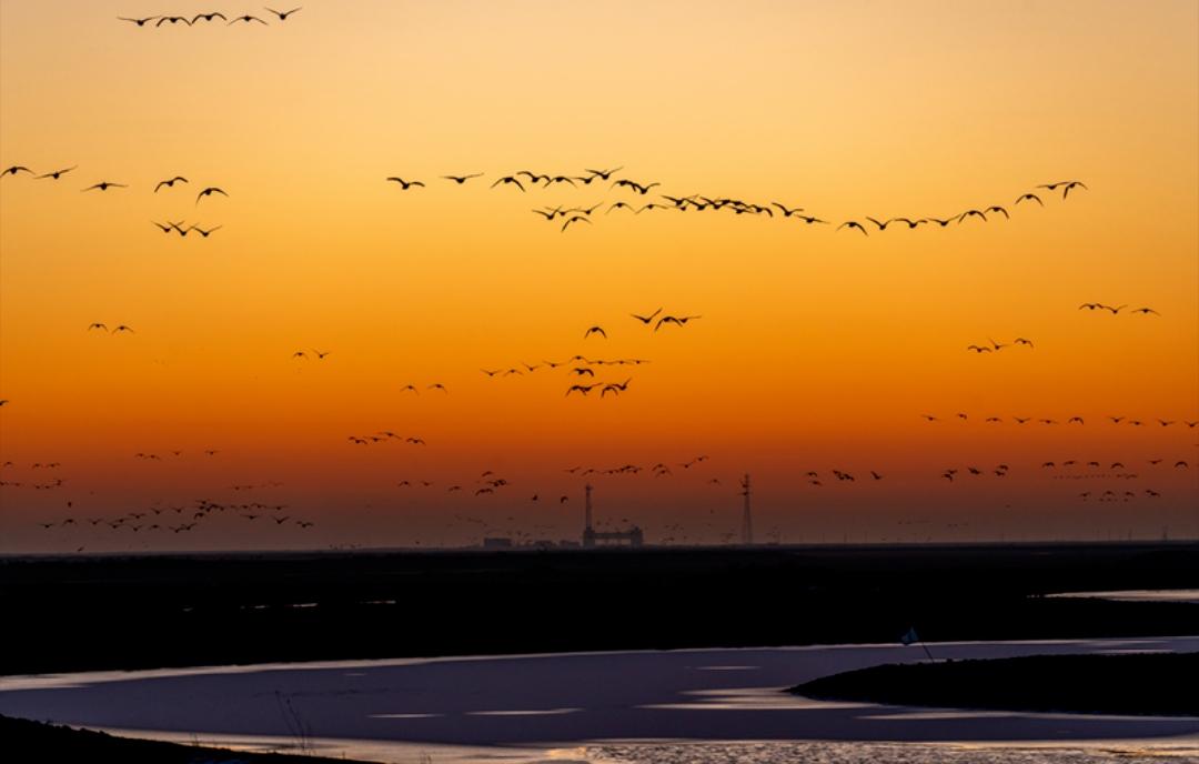 黄河口惊现“鸟浪化鲲”!这场面太绝了 每年冬天,山东东营黄河三角洲国家级自然保护区都是候鸟的“热门中转站”,妥妥的“鸟类国际机场”。 最近,这里上演了超震撼的“鸟浪化鲲”奇观!数十万只候鸟在天空盘旋,一会儿直冲云霄,一会儿俯冲而下,密密麻麻的鸟群变幻队形,活脱脱就是《逍遥游》里“北冥有鱼,其名为鲲”的现实版。 摄影爱好者和游客们都看呆了,拍下的视频让网友直呼“太梦幻”。据保护区专家说,这其实是鸟儿们躲避天敌的防御阵型。 更让人开心的是,随着黄河三角洲生态环境越来越好,这里的鸟类种类从建区时的187种涨到了371种,每年过境候鸟超600万只,连东方白鹳这样的珍稀鸟种也来打卡。 这壮观的“鸟浪”,不仅是大自然的神奇手笔,更是生态保护的最好成绩单! 黄河东营观鸟 黄河入海口观鸟 黄河口鸟浪 东营自然保护区 东营观鸟路线 东营看鸟 东营观鸟 山东绝美观鸟 山东鸟浪 黄河三角洲旅游 海鸟南迁 黄河岸边白鹭 黄河鸥鸟 黄河口东方白鹳 东营鸟类图鉴