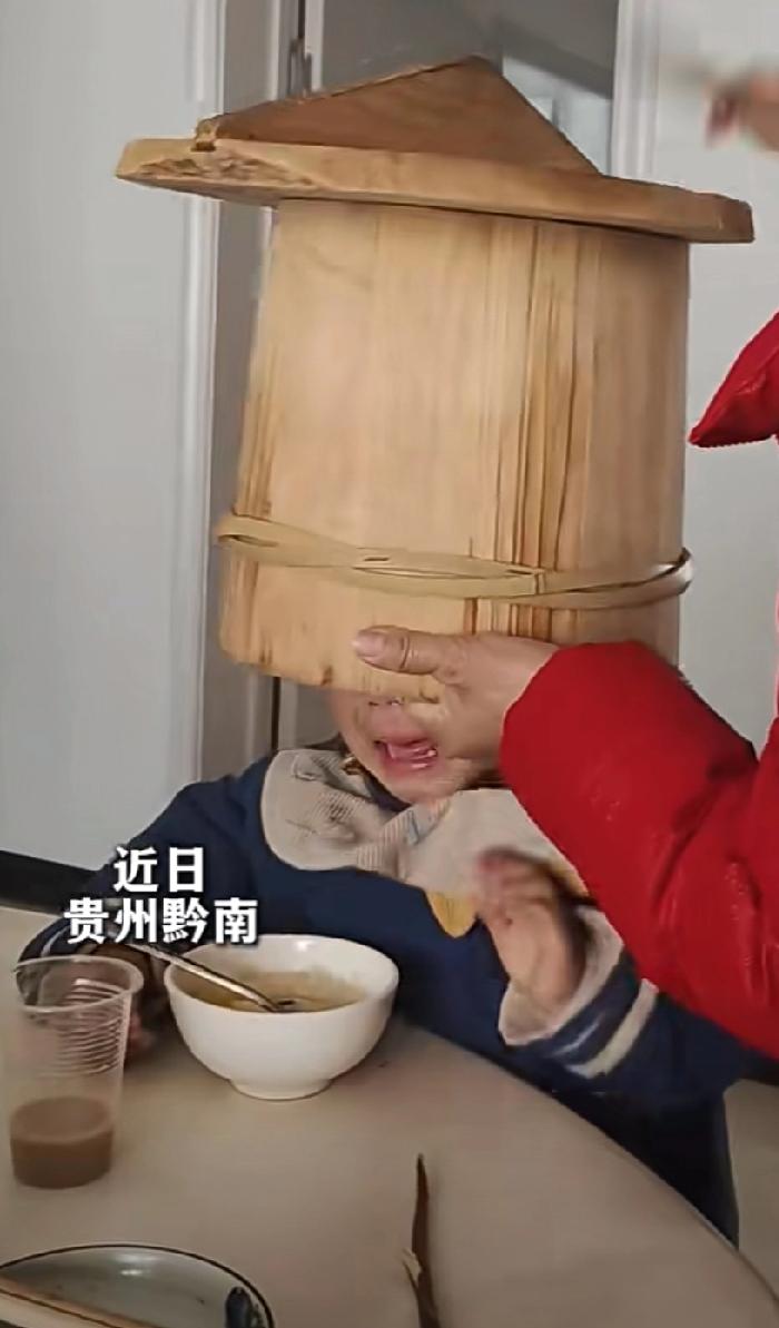 小孩儿一到饭点就“发饭疯”,家里长辈直接上桶!长辈:“这是老辈人传下来的土办法!”小孩儿:“吓死我了,再也不敢了!” 近日,贵州黔南一小男孩儿一到吃饭的时候就哭闹不止,喂饭成了一大难题! 无奈之下,家里的长辈想起了老一辈人传下来的土方法,专门解决孩子“发饭疯”! 只见长辈拿出一个造型奇特的木桶,倒扣在小孩头上,拿一个木棍“邦邦邦”一直敲。 看起来无厘头的土方法,效果真的很不错。现在孩子吃饭不哭不闹,一勺接着一勺吃的可带劲了! 都说科学的尽头是玄学,网友们却说孩子这是吓得不敢哭闹了!对此,你怎么看呢? 喂饭