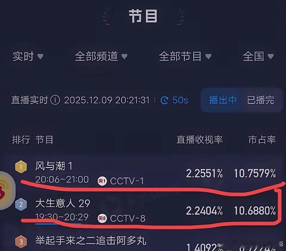 任嘉伦不语,一上来就打败了陈晓的《大生意人》,收视登顶第一,而且是接底盘开播,从1.4拉到了2.2,这收视率真的是牛。任嘉伦今年一口气播了三部剧,妥妥的高产男神,他现在自己单干,这两年资源明显下降很多,合作的女演员都不太稳定,《风与潮》播得好,后续才能有筹码谈资源,期待后续剧情。